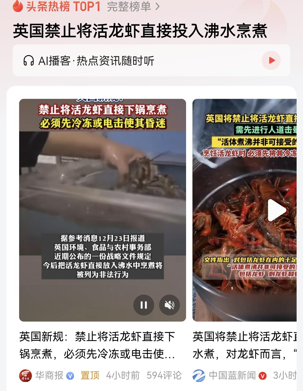英国禁止将活龙虾直接投入沸水烹煮英国人对虫子比对人仁慈多了。当年英国殖民地的土著人,也没这么好的待遇吧?
