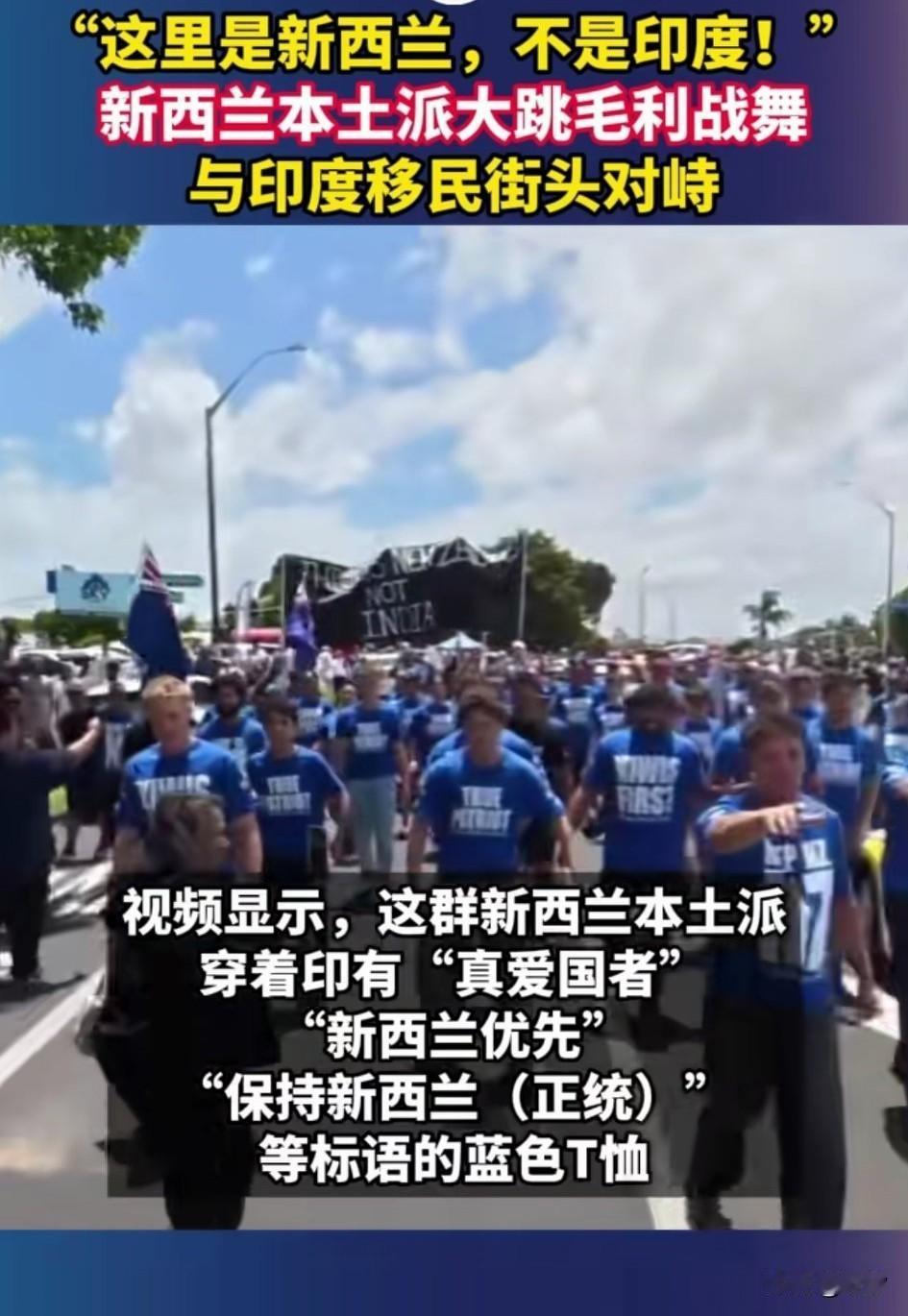 印度人大量移民新西兰, 还组成了不少教派, 这回可惹上大事儿, 新西兰当地土著, 大跳毛利战舞, 与印度移民锡克教集体对峙, 新西兰当地的土著终于无法忍受印度移民,这才集体走上了大街, 他们穿着统一的T恤, 上面印有真爱国者, 新西兰优先, 保持新西兰正统, 甚至露出了横幅, 这里是新西兰,不是印度, 大家都知道印度人在国外比较团结, 很多移民新西兰的印度人, 他们在当地也组成了教派, 面对新西兰人的反抗, 他们丝毫不退让, 甚至和当地人举行对峙, 很多包着头巾的印度移民也走上了街头,这让当地政府头很疼, 虽说印度移民增加了当地的劳动力, 是当地因为印度移民而变得混乱, 这才引起了当地居民的反感, 大家对于新西兰的印度移民怎么看? 印度人移民 印度移民 印度人加拿大 新西兰移民 新西兰移民方式 澳洲新西兰移民 新西兰技术移民