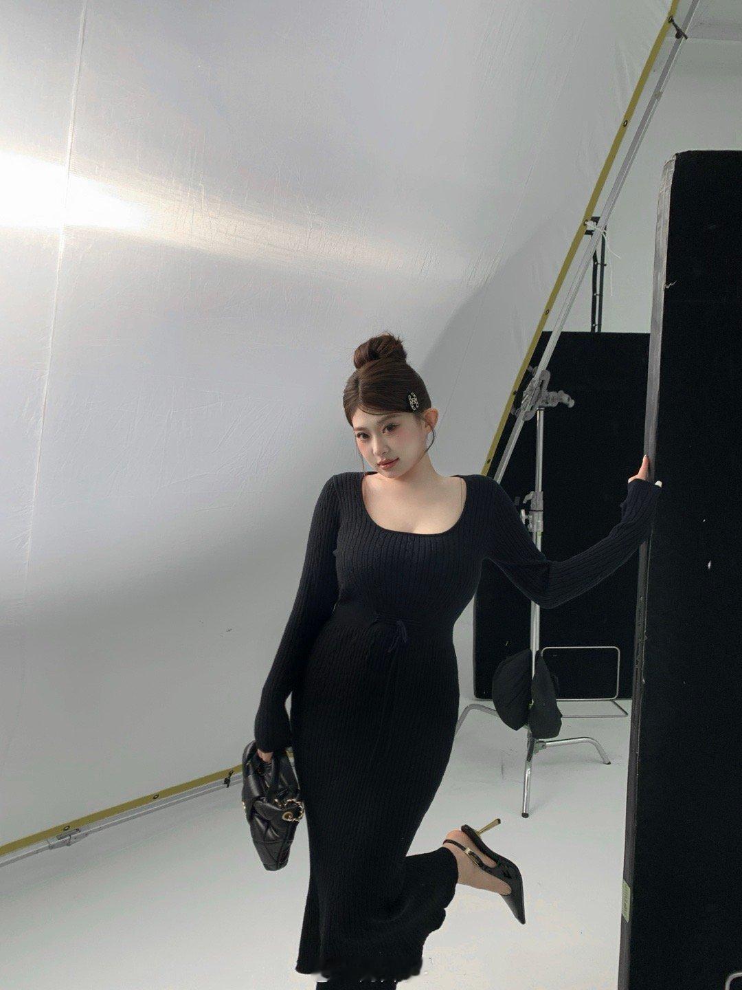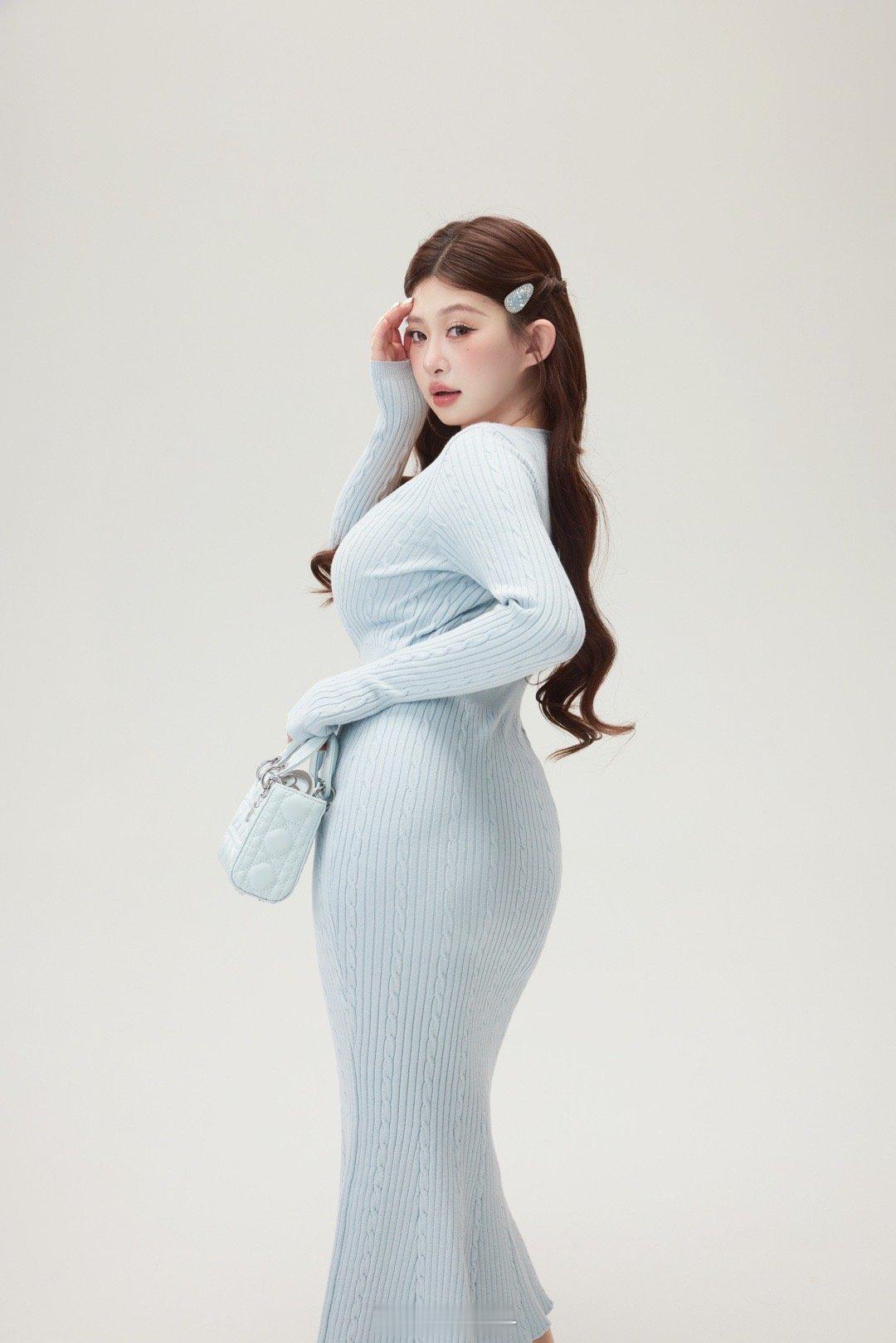 ‼️真·全网无代餐 盐水蓝Lady裙🥇✔️5cm视觉缩腰 像量身定制般的缩腰魔法〰️腰部独特小设计精准掐出小蛮腰搭配竖向坑条针织的纵向拉伸感!!盐水蓝温柔与高级并存🩵黑色款性感大气🖤鱼尾裙摆顺着身形垂坠下来🎶坑条针织面料软糯有弹性市面上真的找不到平替款!!!