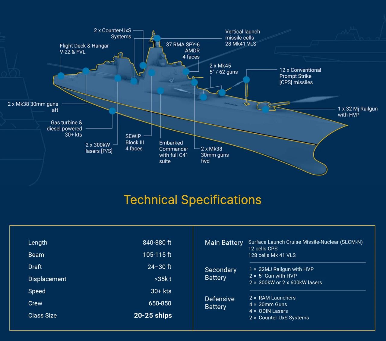川普玩嗨了,宣布建造特朗普级战列舰,该级战列舰首舰称之为“无畏”号。 没想到吧,这年头居然还能看到战列舰,美国现在连护卫舰造起来都费劲,居然直接开造海上巨无霸。特朗普称这是史上速度最快、体型最大的战列舰,不知道是不是为了迎合他个人兴趣爱好,反正还要用他的名字命名,未来计划建造10艘,先买2艘用用再说。 性能也是强大到吓死人,装备电磁炮、激光武器、高超音速导弹、核巡航导弹等,反正美国手头上有或没有的都装上去,有点像拼图好看为主。排水量高达3.5万吨,舰长256米-268米,舰宽32米-35米,最高航速超过30节,船员650-850人。不像是专业设计,搞不好图纸还是特朗普自己画的,开心就好。