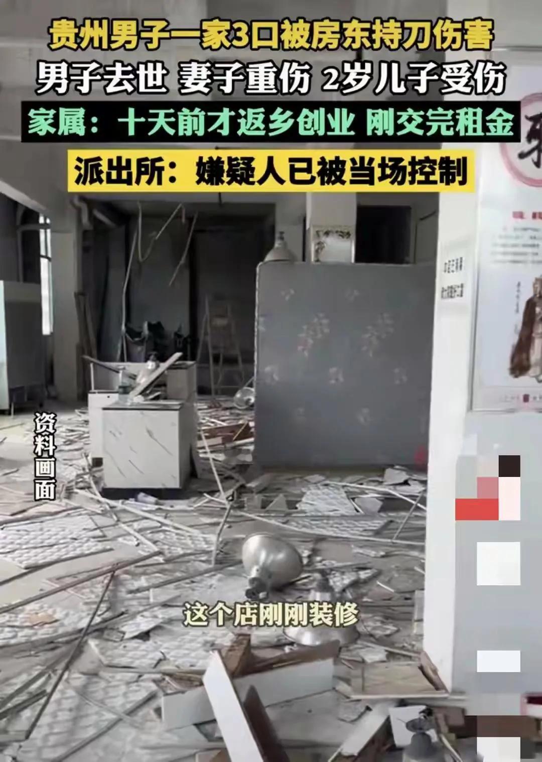 贵州惨案!签约9天,房东挥刀砍向租客一家三口!1死2伤,知情人曝血腥内幕 12月17日下午,贵州贞丰县建设路的街头,一阵凄厉的哭喊划破了市井的喧嚣。 一间正在装修的门面房里,地砖被鲜血染红,一名男子倒在血泊中当场丧命,他的妻子浑身是伤,怀里未满两岁的孩子哭得撕心裂肺。而手持菜刀、满脸狰狞的行凶者,不是别人,正是他们刚签约9天的房东! 这场1死2伤的恶性血案,把一个满怀希望的家庭彻底碾碎,更随着知情人的爆料,扯出了一连串让人脊背发凉的隐情。 被害人的叔叔韦先生痛诉,死者是个在浙江义乌苦熬多年的务工者。今年12月8日,他揣着半辈子攒下的血汗钱回到老家,一心想结束和妻儿两地分居的日子,开个小店安稳度日。 当天,他一眼看中了建设路的这间门面,和房东谈好条件后,当场签下三年租赁合同,一次性缴清了所有租金。攥着那张薄薄的合同,他脸上的笑容,满是对未来的憧憬。 签下合同的第二天,他就马不停蹄地启动装修,恨不得第二天就能开门迎客。12月17日下午,他像往常一样,带着妻子和刚会说话的儿子去店里盯装修进度。 谁能想到,这一去,竟是和这个世界的永别! 就在一家三口围着墙面,商量货架怎么摆的时候,房东突然从楼上冲了下来,手里的菜刀闪着寒光。他二话不说,朝着毫无防备的三人疯狂砍去! 男子下意识地把妻儿护在身后,自己却被迎面一刀刺中要害,当场倒在血泊里。妻子抱着孩子拼命躲闪,胳膊和后背被划开数道深可见骨的口子,孩子的小手也被刀刃划伤,撕心裂肺地哭喊着“爸爸”。 隔壁商铺的老板听到动静,吓得魂飞魄散,一边大喊救命,一边赶紧报警。附近的街坊们也冲了过来,试图拦住已经杀红了眼的房东。 万幸的是,民警十分钟内就火速赶到,将还在挥刀的凶手当场控制带走。 救护车呼啸而至,医护人员赶紧把受伤的母子抬上担架。躺在担架上的妻子眼神空洞,嘴里反复念叨着“为啥要砍我们”,而那个两岁的孩子,还在哭着要爸爸。这一幕,看得围观的人无不心碎。 随着案件发酵,知情人爆出的内幕,让所有人都惊掉了下巴。 这场血案的导火索,竟然只是一件鸡毛蒜皮的小事——装修钉钉子! 当时装修工人正在墙上用电钻钉钉子,准备固定货架。电钻的轰鸣声传到了住在门面楼上的房东耳朵里,这个性格孤僻的男人瞬间炸毛,他认定租客是在“破坏房屋”,还嫌噪音吵到了自己,当场就和租客吵了一架。 租客当时还特意叮嘱工人轻点施工,以为这事就这么过去了。可谁能想到,房东竟然怀恨在心,转身就抄起了菜刀! 更让人头皮发麻的是,这个房东在当地的口碑,早就烂透了。 知情人爆料,凶手是个五十多岁的单身汉,无儿无女,常年独居。他不仅嗜酒如命,喝醉了更是性情大变,一言不合就骂人。 他的脾气古怪又暴躁,对租客的苛刻简直到了变态的地步。之前的好几拨租客,都因为受不了他的刁难和辱骂,没住满半年就被迫搬走。 用街坊的话说:“他就是一颗埋在身边的定时炸弹,谁也不知道什么时候会炸!” 目前,贞丰县公安局珉谷派出所已经证实了案件的真实性,嫌疑人已被依法控制,案件还在进一步侦办中。街道办和社区也已经介入,帮忙处理善后事宜。 可就算凶手最后被判死刑,又能怎么样? 那个盼着安稳度日的丈夫,再也看不到店铺开张;那个重伤的妻子,不仅要承受身体的剧痛,还要面对失去丈夫的绝望;那个才两岁的孩子,从此成了没爹的娃。两个家庭,都被这场无妄之灾拖进了深渊。 这起惨案在网上传开后,瞬间引爆全网热议。 有网友痛骂:“就因为几颗钉子,毁了一个家!这是什么魔鬼心肠!” 也有网友感慨:“冲动是魔鬼啊!一点小事就拔刀相向,最后害人害己!” 还有网友揪心:“那个孩子太可怜了,以后可怎么办啊!” 更有人联想到了近年来的多起类似案件——山东男子因楼上走路声音大持刀杀人,广州住户因孩子吵闹砍死邻居一家三口。这些命案的起因,全都是芝麻大的琐事,却都酿成了无法挽回的悲剧。 生活里,磕磕碰碰在所难免。租房装修、邻里相处,更是容易产生摩擦。 可再大的矛盾,也不该让极端情绪冲昏头脑。暴力从来不是解决问题的办法,只会让矛盾越闹越大,最后付出生命的代价! 这起案件,更是给所有人敲响了警钟: 返乡创业也好,租房居住也罢,不仅要签规范的合同,明确双方的权责,更要提前打听清楚房东的人品底细。遇到矛盾,先冷静沟通,实在谈不拢,就找社区或者相关部门调解。 别让一时的冲动,毁掉几个家庭的一生! 目前,受伤的母子还在医院抢救,案件的更多细节还在调查中。我们期待警方尽快查清真相,依法严惩凶手,给受害者家属一个公道! 愿逝者安息,愿受伤的母子能挺过难关,早日走出这场噩梦!