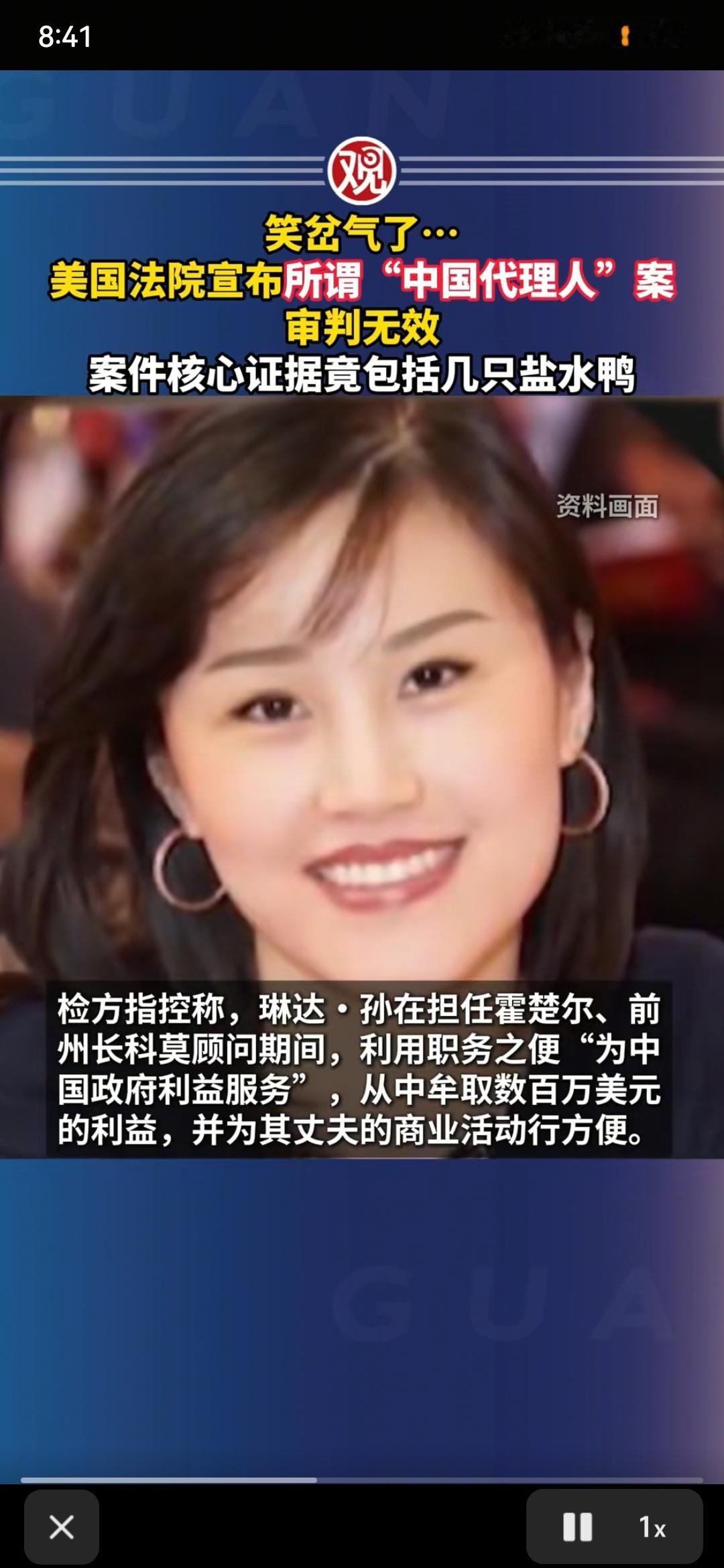 一桩被美国政界和媒体大肆炒作的所谓"中国代理人"案件,在喧嚣数月后以一地鸡毛告一段落。 据美国《纽约时报》等媒体报道,陪审团在对孙女士及其丈夫所涉的指控进行数日讨论后,因陪审团意见不一致,纽约布鲁克林联邦地区法院当地时间12月22日宣布,纽约州州长凯西.霍楚尔前高级助手琳达·孙被控在任职期间"充当中国代理人"一案审判无效。 案件的始末宛如一部精心编排的政治戏剧。 最初,某些美国政客与部分媒体联手,指控41岁的琳达孙违反和密谋违反《外国代理人登记法》,她在担任州长科莫顾问期间,利用职务之便为中国政府利益服务,从收受数万美元的回扣及礼物,包括名牌包包、价值约3200万美元的檀香山房产、长岛一处价值360万美元的住宅等,此外,她还为父母收受了中方送的几只盐水鸭。 检方宣称,琳达.孙在纽约州政府任职期间,确保州长避免因会见中国台湾代表团批评中国少数民族政策而"触怒北京"还被指私下积极维系与中国外交官、亲中团体的友好关系。 当案件进入实质性的司法程序,一名辩护律师还嘲讽检方将盐水鸭作为案件核心证据,摆明了是缺乏"确凿证据",这些指控却像沙滩上的城堡般在证据浪潮中迅速坍塌。 虽然审判无效,但是美国政府却不答应,希望重新对这对夫妇提起审判,法院已将案件进展听证会定于2026年1月26日举行。 所谓"中国代理人"案件的炒作,就是某些政客捞取政治资本的便捷途径,就是政治需求。这种"政治猎巫"行为对美国自身的司法信誉和国际形象造成了深远的伤害。当法律被工具化、司法程序被政治化,美国的法治精神便遭到了侵蚀。