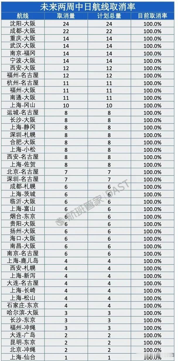 这是什么信号?有谁说得清楚?收复台湾?截至2025年12月22日,2026年1月中国大陆赴日航班取消量已达2195班次,航班取消率为40.4%,12月22日至1月4日,46条中日航线将取消全部航班 这串冷冰冰的数据砸下来,比任何外交辞令都要震耳欲聋,很多人第一反应是这就“开打”了,也有人拿“市场调整”来粉饰太平,其实这两者都看浅了,这不是热战爆发前的集结号,也不是简单的生意经,而是一场高维度的“混合战”压力测试。 日本的经济命脉早被死死绑在中国身上。汽车行业首当其冲,丰田、本田、日产在华销量占全球三成,2025年10月单月销量暴跌三四成,工厂减产、零件库存堆积的消息不绝于耳。稀土更是命门,制造高端电机的重稀土100%依赖中国,就算从澳大利亚买原料,最终还得找中国提纯,铃木汽车已经因为缺镝被迫停产,丰田制造成本直接涨了25%。老百姓的日子也受影响,医院83种常用原料药全靠中国供应,抗生素依赖度超95%,没了中国货,看病拿药都得看脸色。 历史上的混合战从来都不是热战。冷战时美国对苏联搞经济封锁,禁运2100多种物资,硬生生拖垮了苏联的工业体系。建国初期美国联合36国对中国禁运,我们靠易货贸易、抢运物资硬是扛了过来。现在轮到中国掌握主动权,这种非军事手段的施压,比炮弹更精准。日本喊了好几年“去风险化”,搞“中国+1”供应链,结果跟印度合作13年,稀土还是从广西中转过去的,成本反而贵了15%-20%。 日本在台湾问题上的小动作,早该付出代价。2025年11月,首相高市早苗公然把“台湾有事”说成日本“存亡危机”,还计划在西南诸岛部署千枚导弹,射程直指中国沿海。可这些导弹刚曝光就被群嘲,亚音速飞行1000公里要半小时,咱们的红旗防空系统轻松就能拦截。一边想在台海煽风点火,一边又离不开中国的市场和资源,这种自相矛盾的操作,迟早要反噬。 中国游客曾撑起日本旅游业四分之一的消费,高岛屋免税店春节销售额能涨50%,现在航班一减,不少温泉酒店、药妆店只能裁员止损。野村研究所算过,中国游客大幅减少,日本GDP直接少0.36%,相当于2.2万亿日元,这对增速只有0.5%的日本经济来说,无疑是雪上加霜。 混合战的核心从不是摧毁,而是划清红线。中国不想跟谁撕破脸,但绝不允许别人触碰核心利益。这次航班调整,就是让日本看清楚,依附别人的日子不好过,跟着美国搞对抗没有好结果。经济绑定不是枷锁,而是和平的筹码,可惜日本右翼至今没看懂。 国家主权和领土完整,从来都是底线中的底线。任何企图干涉台湾问题、挑战中国核心利益的行为,都要付出相应代价。这场压力测试,既是给日本的警告,也是对自身供应链、经济抗风险能力的检验。 感谢你的阅览与点赞,欢迎在评论区讨论。