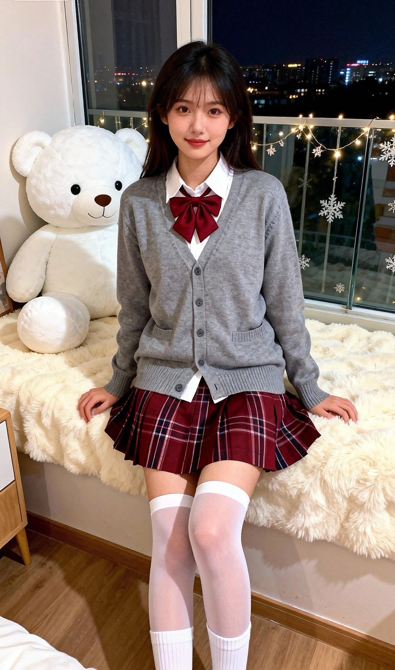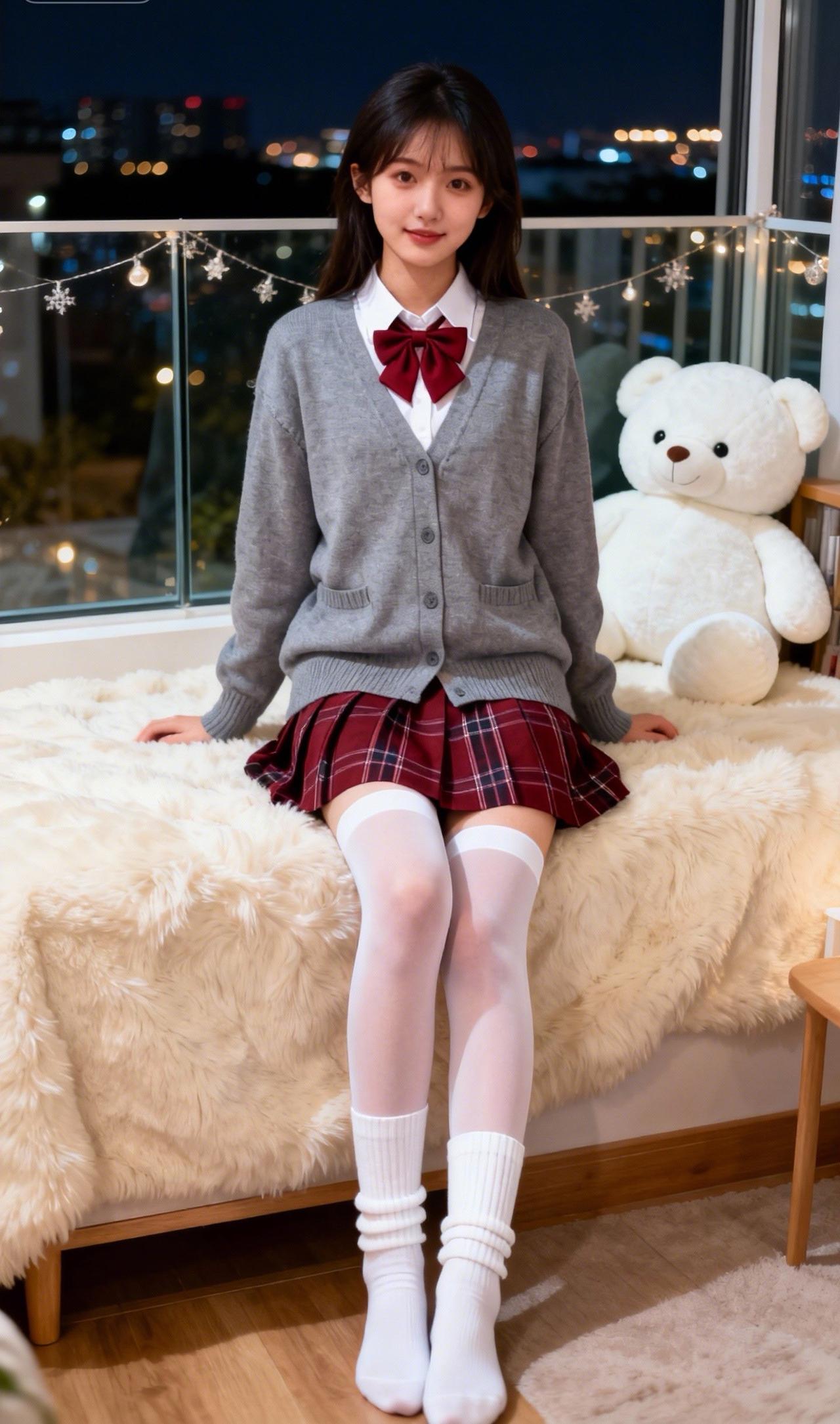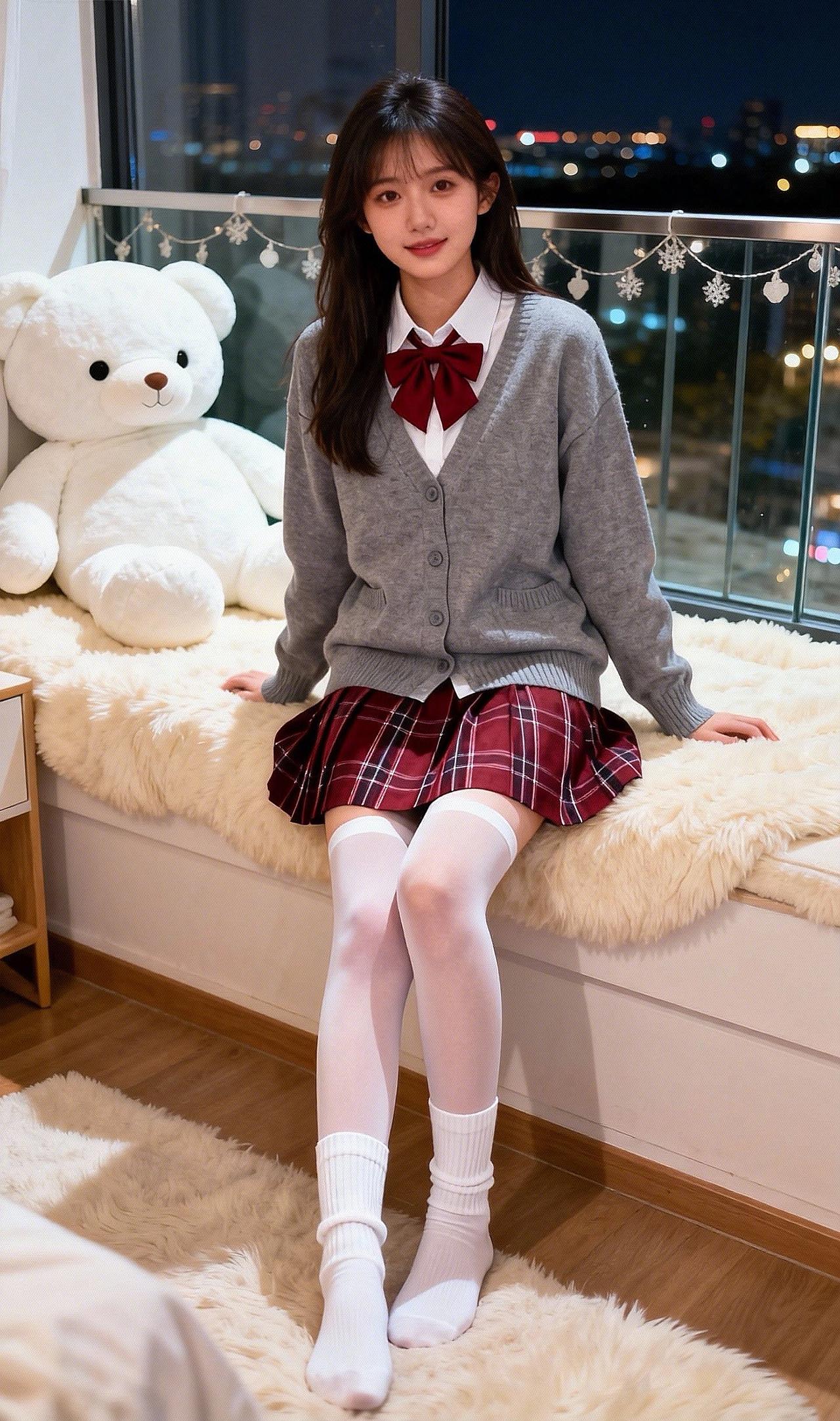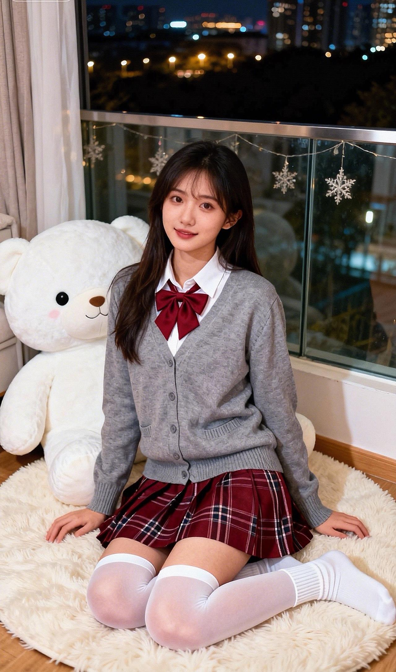 少女心爆棚的夜晚,与毛绒熊一起享受温馨时光。毛绒少女自拍 jk裙分享