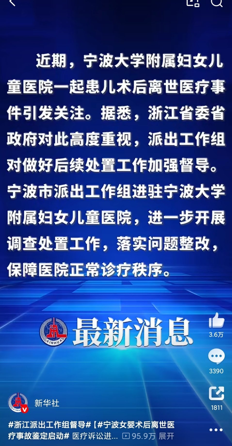 #宁波女婴术后离世医疗事故鉴定启动##小洛熙事件医疗诉讼进入司法程序# 从各方消息来看,小洛熙事件即将迎来最终结局,很期待看到事件的详细经过和事实。也相信,这个事件能进一步提高医院等各界对婴幼儿健康的关注。#小洛熙#