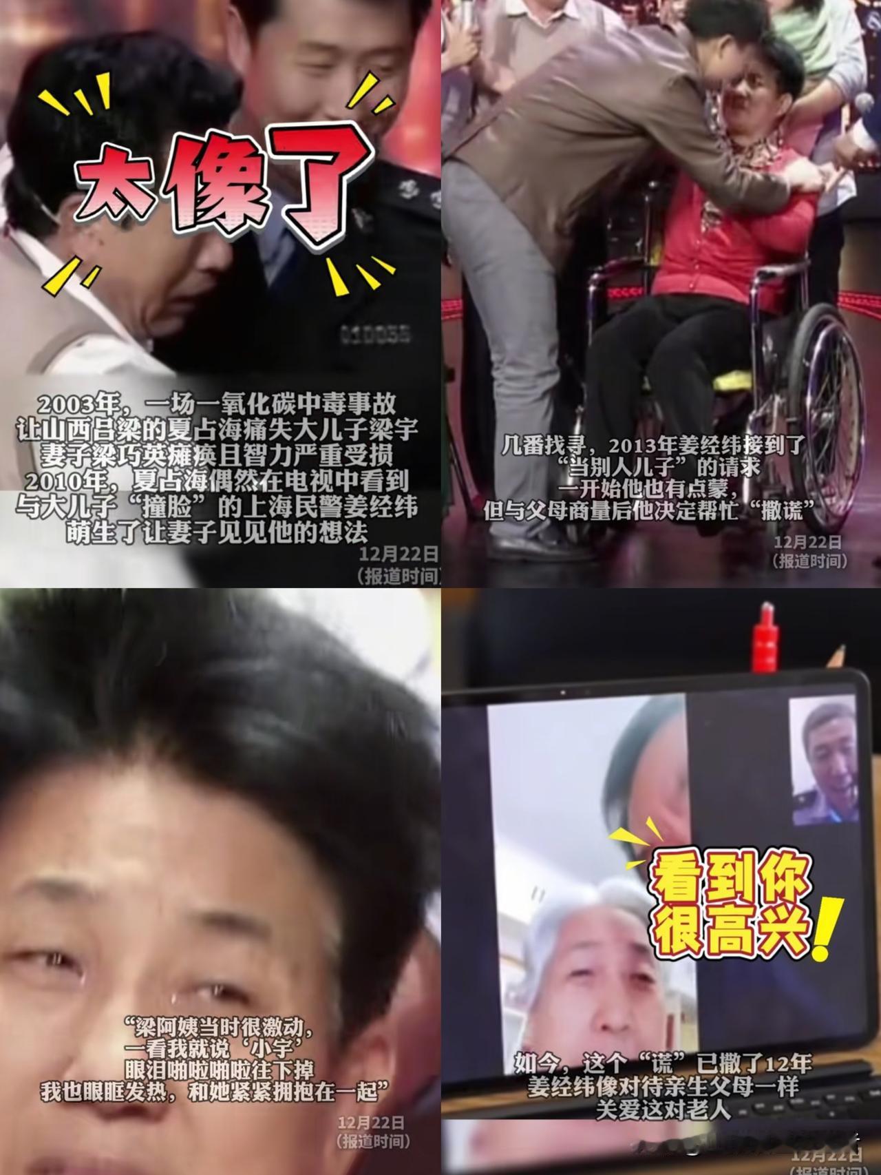 12年“假儿子”,真温柔! 山西老两口痛失独子后智力受损,偶然在电视上看见上海民警,愣说“这是我娃小宇”。 民警没拆穿,一“装”就是12年: 现学山西话,打电话时一口“晋味儿”能哄老人笑半天; 攒假接二老来上海逛外滩,揣着保温杯跟在后面当“跟班儿子”; 连老人念叨的“小时候爱吃的糖饼”,都偷偷跟着教程学了好几回。 他说:“我是不是小宇早不重要了——只要能让他俩踏实过日子,我就是他俩的娃。” 哪有什么“撞脸的巧合”,不过是有人把善意揉碎了,装成亲情的样子,扛住了老人余生的风雪。