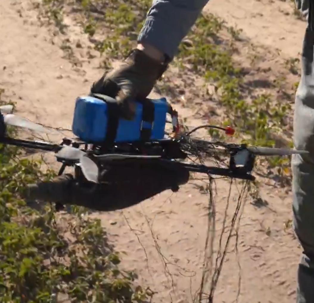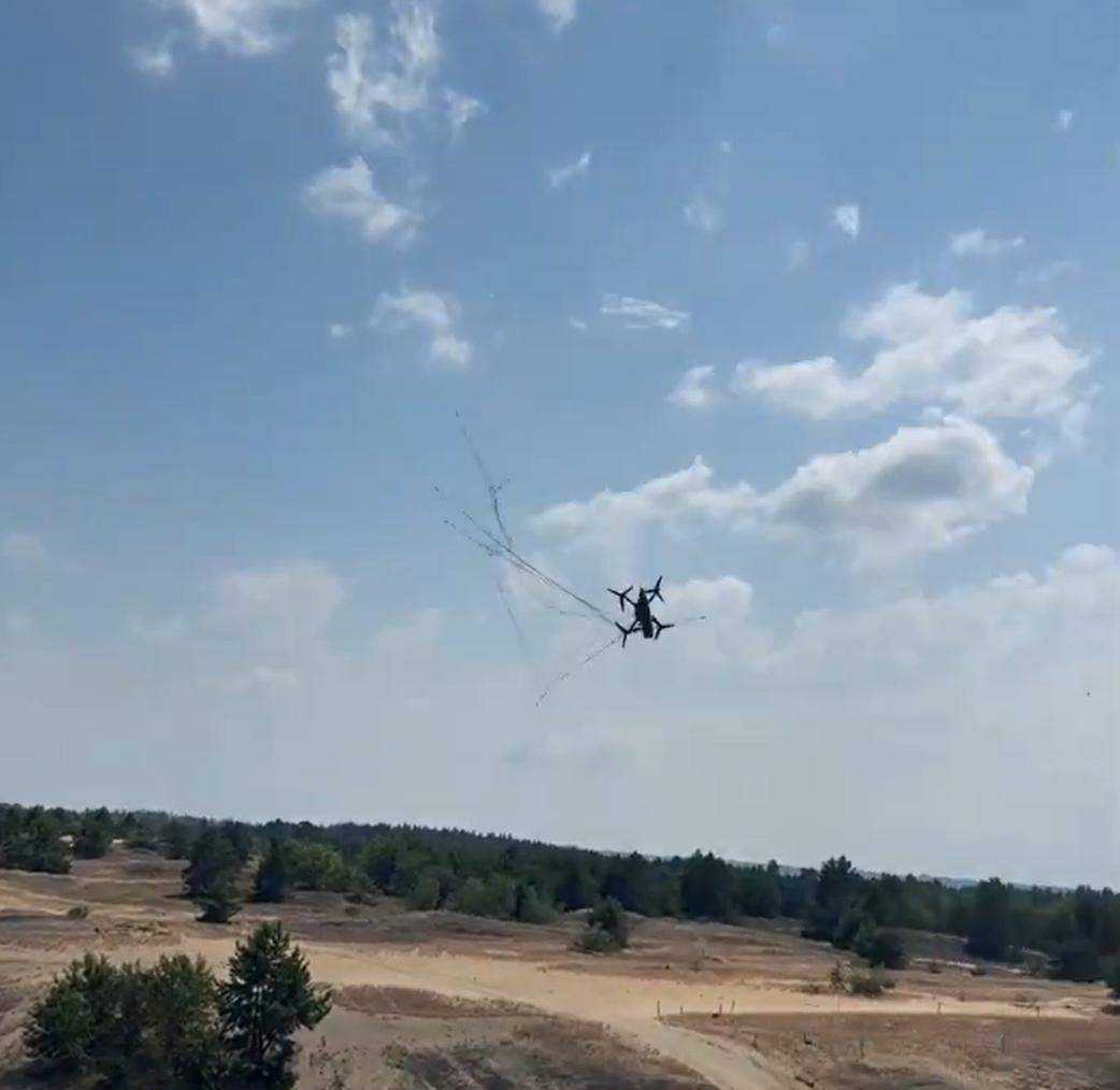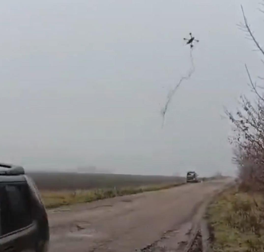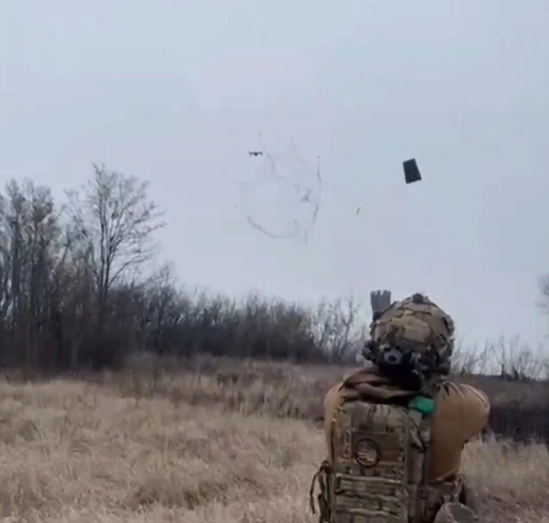乌克兰士兵表示,对抗光纤制导FPV无人机最有效的防御方法仍然是“Safari”霰弹枪和“Ptashka”捕网器的组合。如果无人机没有被霰弹击落,就会被发射至30米高空的4米×4米的捕网网住。