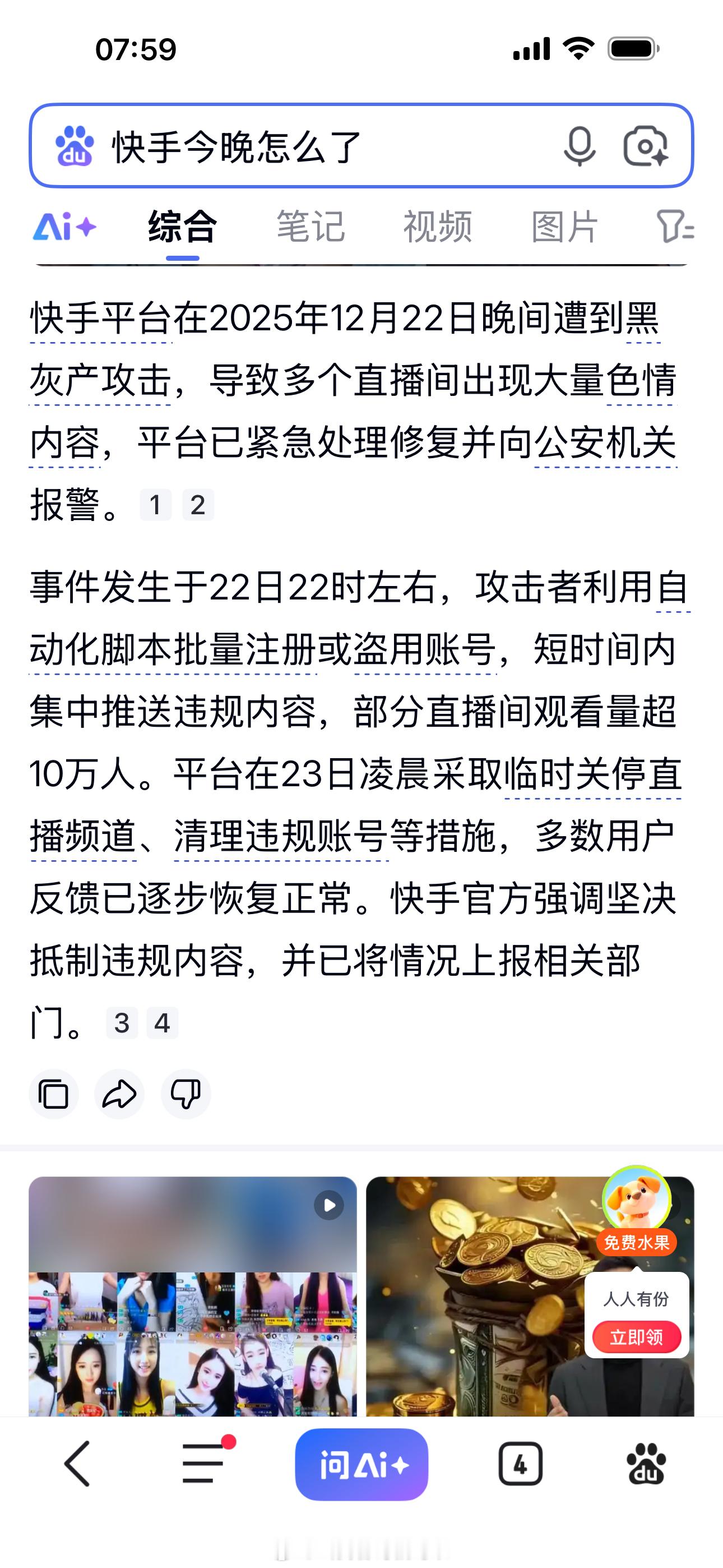 快手咋了 有人知道咋回事吗?这么大一平台随随便便被人黑了。我啥也没看到……