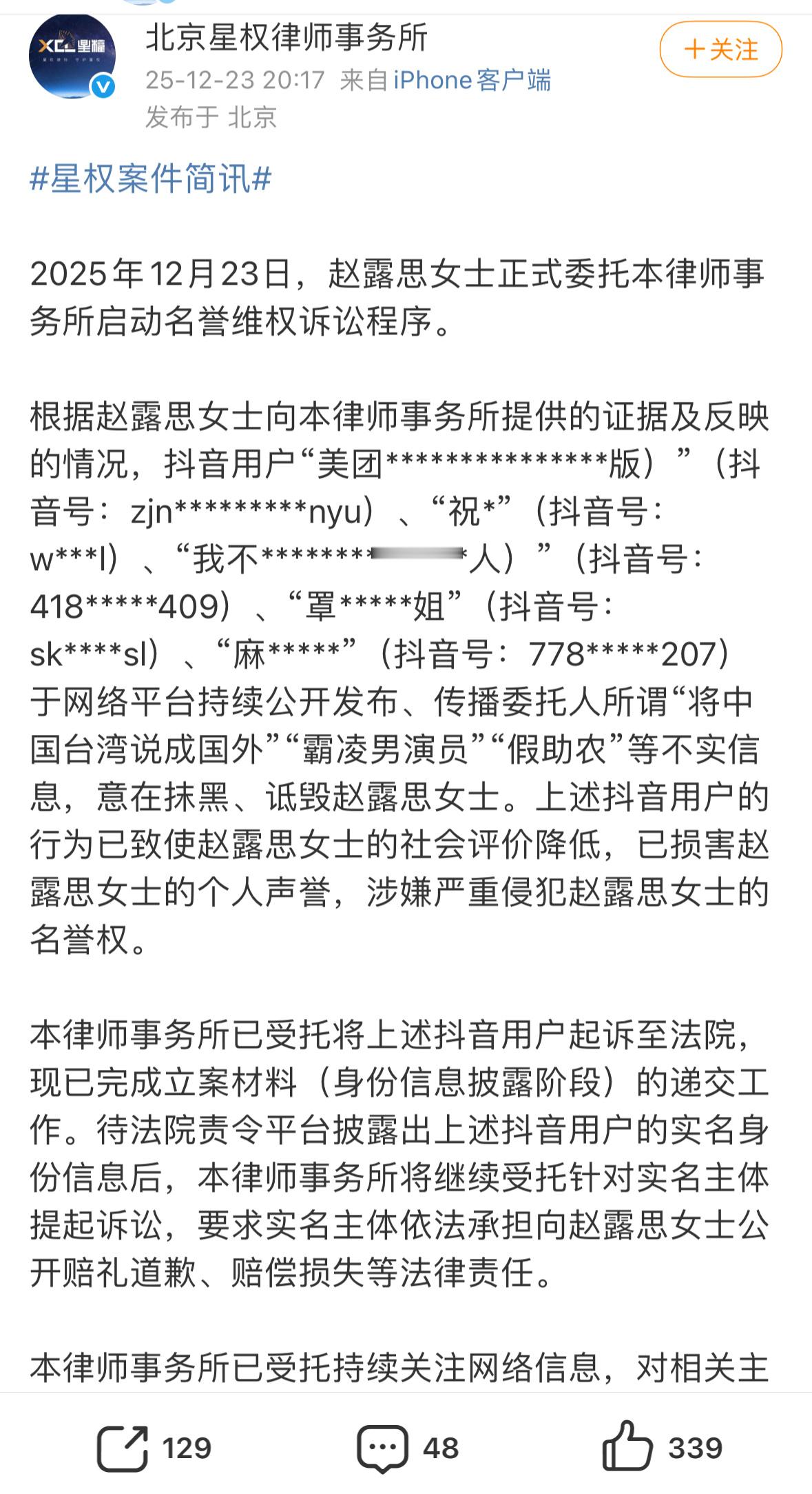 赵露思又告嘿了告了说她80男演员和把中国台湾说成国外的、还有假助农的。