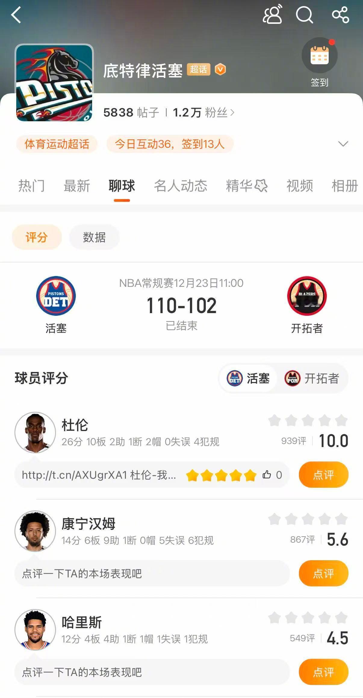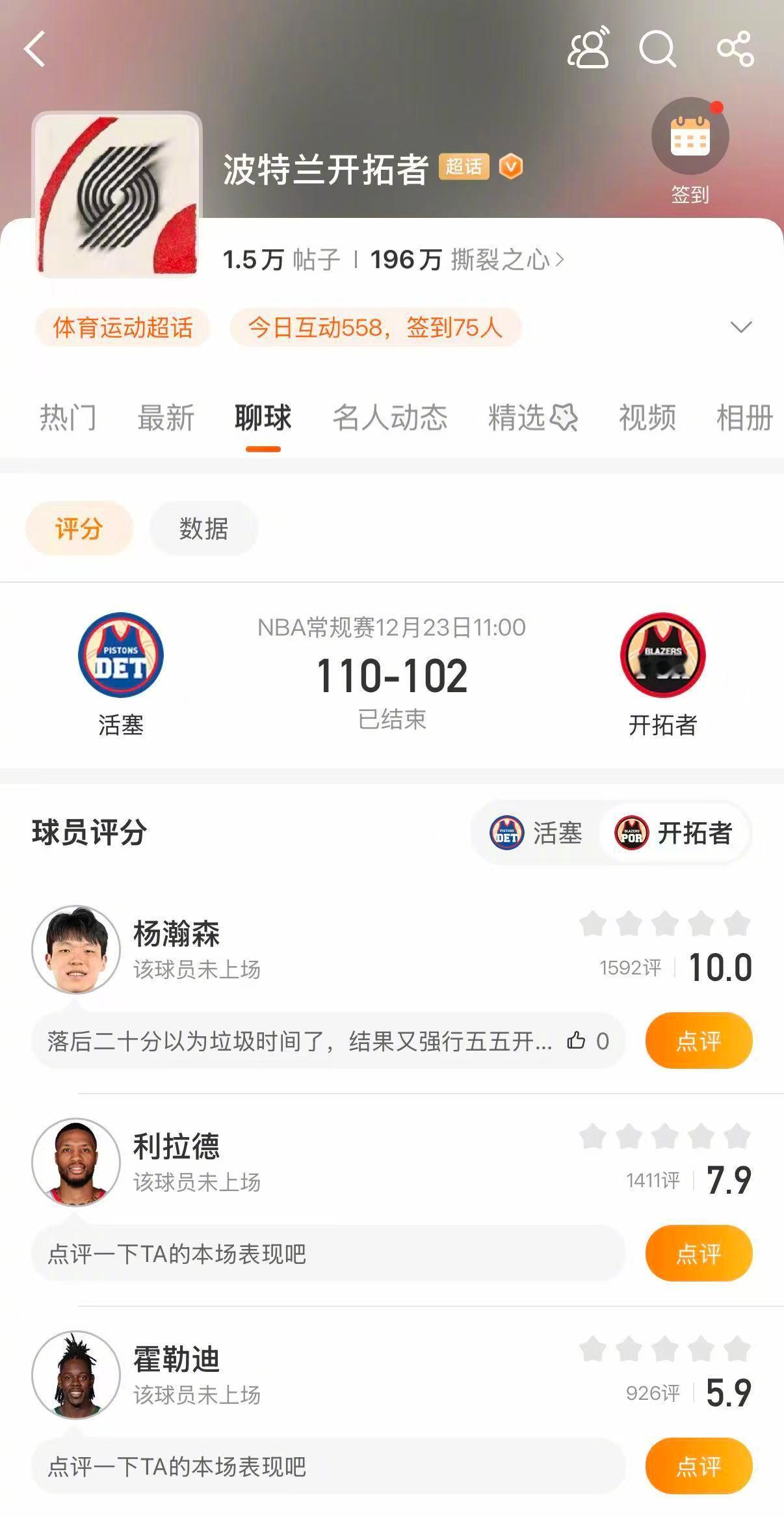开拓者公式输球 这剧情我好像看过!活塞110-102战胜开拓者,开拓者在落后21分的情况下一度反超,但最后功亏一篑不敌对手。活塞方面,杜伦26分10篮板,坎宁安6犯离场,砍下14分。开拓者方面,杨瀚森未登场,夏普25分,阿夫迪亚18分。欢迎大家进入球队超话底特律活塞 和波特兰开拓者 对球员表现进行评分!杨瀚森连续五战未登场