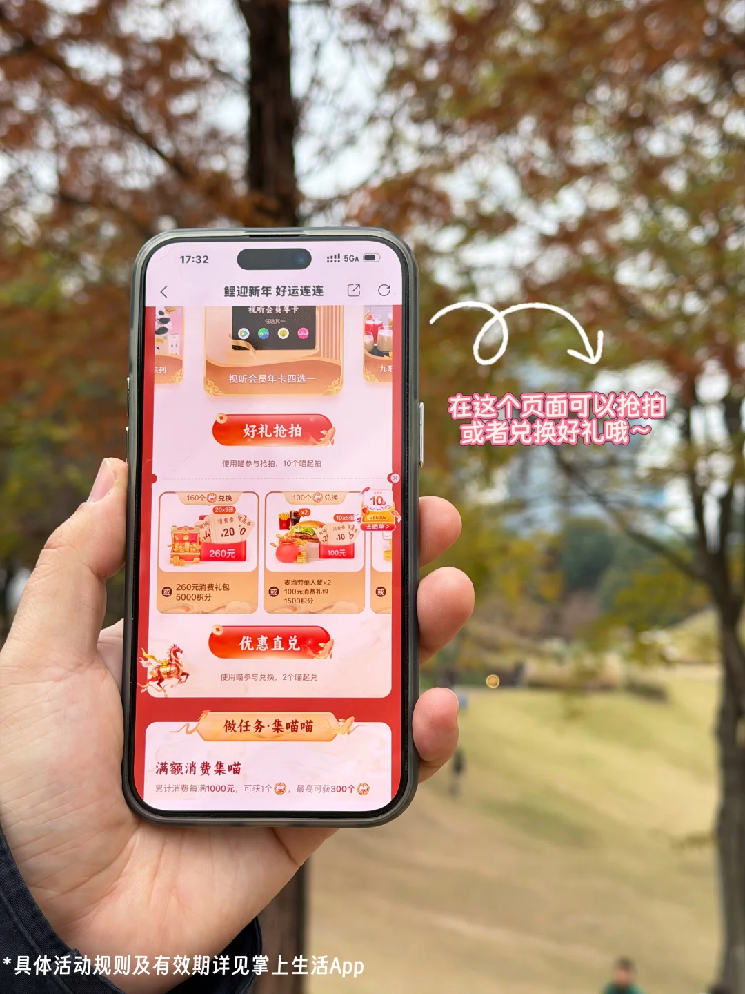 集满指定数量后,在掌上生活App搜索“鲤迎新年”