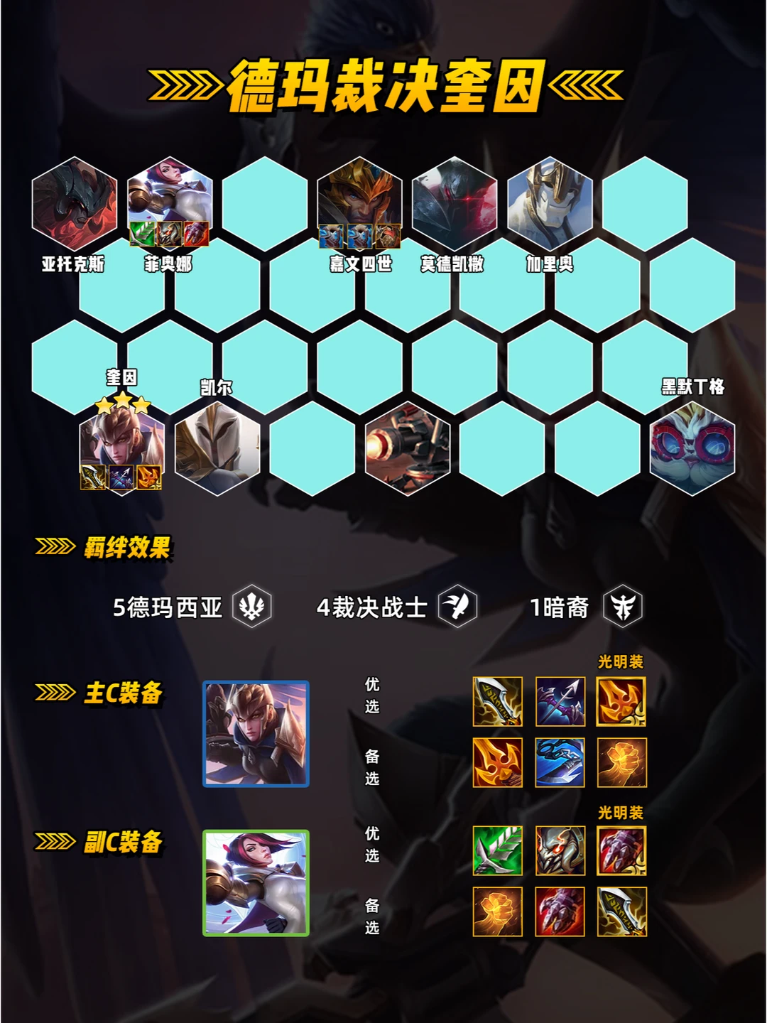 金铲铲s9.5阵容-德玛裁决奎因,场均万伤!