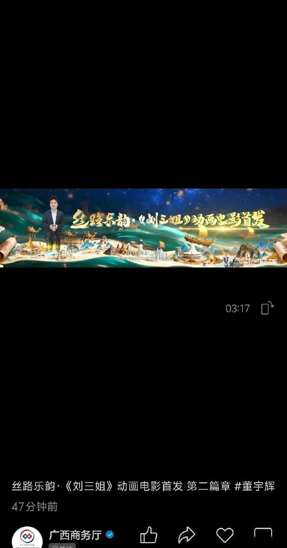 商务厅,开始抢人了。今天直接点名要董宇辉。不是请,是要。为了他们年底的王炸——《刘三姐》动画电影。这不是简单的宣传,官方还把刘三姐这个老IP重新做了动画,每一帧画面都很精致。他们打的主意不只是卖电影票。之前董宇辉带货《三国的星空》绘本销量特别好,这次广西想学这招。用当红主播讲好故事,再通过故事吸引更多人来旅游。关键他们找的不是普通主播,是要会讲文化的人。董宇辉能帮孩子记住刘三姐,可能比单纯拍景点广告效果更好。现在不清楚这场合作具体怎么玩,但明显是想把电影和旅游打包推销。