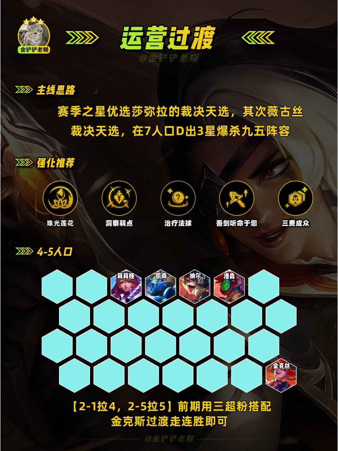 金铲铲之战 金铲铲阵容 金铲铲推荐阵容 金铲铲之战上分阵容推荐 金铲铲强音对决 晒出你的金铲铲战绩 金铲铲新手教学 金铲铲之战新手教学 金铲铲攻略 云顶之弈 金铲铲推荐阵容 金铲铲新版本上分阵容 金铲铲版本答案