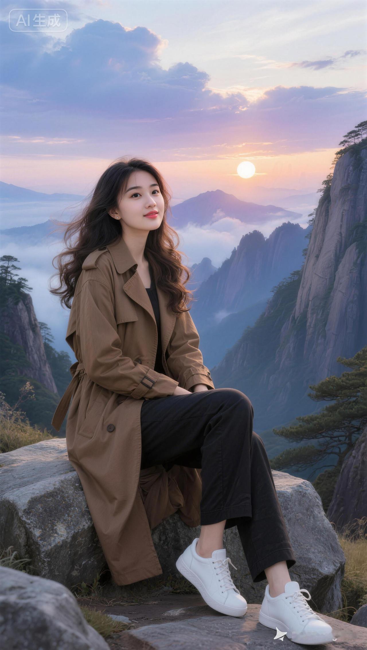 山巅之上,落日余晖,悠然自得