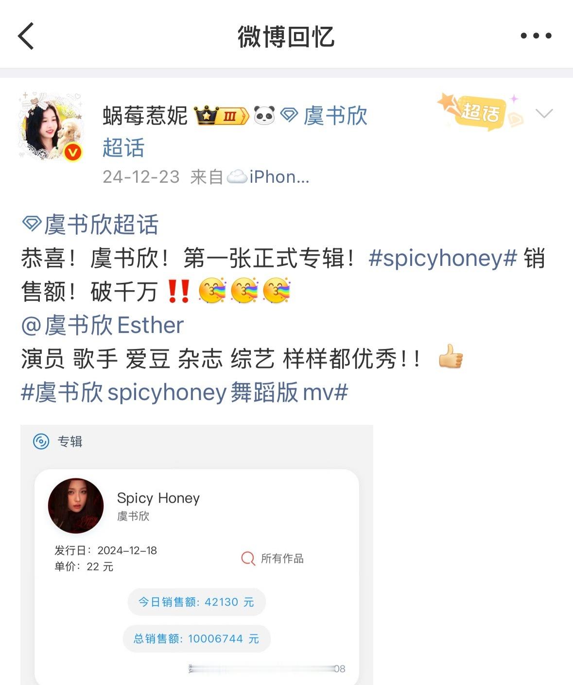 哇塞去年今日是咱们spicyhoney电子专销售额破千万的日子~