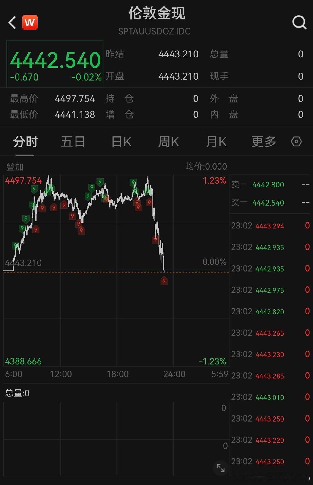 【黄金又坐过山车】12月23日,现货黄金转跌,现下跌0.02%,报4442.51美元/盎司;此前一度上涨1.2%。白银今年涨幅是黄金的2倍黄金白银彻底涨疯了 (财联社)