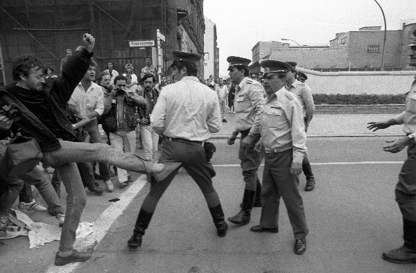1986年。查理检查站,与东柏林警察起冲突的西柏林市民