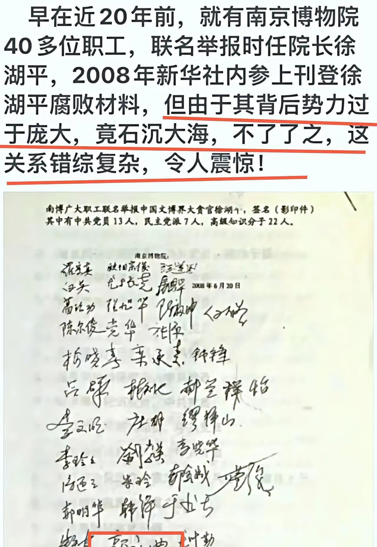这招太狠了, 精准拿捏七寸! 国家文物局不走常规路 放着徐湖平、陆家不动,反倒先找当年举报的郭礼典。 69岁的郭礼典怕是做梦都没想到,自己磕磕绊绊举报十几年,今儿个居然等来了国家文物局的主动找上门。 老人攥着那张三寸见方的工号08006工作证,指节都泛白,这证跟着他在南博典藏部待了整整42年,见证了太多见不得光的猫腻。 以前举报材料递上去石沉大海,如今调查组主动找他核实细节,这份迟来的重视,让老人红了眼眶。 谁都清楚徐湖平是这起文物迷案的核心,陆家是明面上的获益者,可国家文物局偏不按常理出牌。 不是不敢动这两位,是不能急着动,徐湖平82岁了还敢甩锅“没经手”,白纸黑字的调拨签字都能睁眼说瞎话。 陆家早已离世,背后牵扯的利益网盘根错节,没有实锤证据,随便出手只会打草惊蛇,反倒让他们钻了空子。 郭礼典不一样,他是这场闹剧最清醒的见证者,更是十几年如一日的较真者。 2008年徐湖平刚退休,他就联合41名南博职工联名举报,材料都登上了新华社内参,最后愣是被“背后势力”压了下去。 后来2012年、2014年两次补充举报,次次都带着实打实的证据,却次次都泥牛入海,连句回应都没有。 这老人心里憋着的火,比谁都旺,他在南博库房里摸过无数国宝,亲手登记过庞家捐赠的仇英《江南春》,眼睁睁看着这幅传世珍品被贴上“赝品”标签。 他清楚记得1997年那个下午,徐湖平拿着调拨单签字,那会儿对方既是南博副院长,又是江苏省文物总店法人,左手批右手接,一套操作行云流水。 那会儿他就站在旁边想拦,却被一句“你懂什么鉴定”怼了回来,往后十几年,这话成了他心里的一根刺。 国家文物局找郭礼典,找的就是这份旁人没有的亲历细节,找的就是这十几年攒下的铁证。 徐湖平把真品鉴伪、低价划拨、高价倒卖的套路玩成了流水线,外人只看到6800元贱卖、8800万天价拍卖的价差,却不懂里面的门道。 郭礼典不一样,他清楚每一步是谁操作、谁签字、谁从中获利,甚至能说出当年给《江南春》做“伪作”鉴定的专家名字。 那些年郭礼典过得有多难,只有他自己知道,举报信递出去没多久,他就被调离了典藏部,去了清闲的资料室,明着是轮岗,实则是打压。 身边的老同事劝他别较真,说徐湖平上面有人,连省检察院反贪局局长都是他的保护伞,送出去的字画能摆满半间屋。 他偏不,退休后拿着退休金跑遍各个部门,哪怕被人当成疯子,哪怕被家人埋怨“自讨苦吃”,也从没停下脚步。 直到今年5月,庞家后人在拍卖场上看到自家捐赠的《江南春》,舆论彻底炸了锅,郭礼典知道,机会来了。 他连夜剪了视频,举着工作证一字一句控诉徐湖平的六宗罪,私撕故宫南迁文物封条、伪造鉴定结论、搞利益闭环,桩桩件件都戳中要害。 视频一发出去就刷屏,全网都在为这个较真的老人点赞,谁都明白,这不是个人恩怨,是为老祖宗留下的国宝讨公道。 换作以往,大概率还是“等调查”“走程序”的敷衍回应,可这次国家文物局的操作,直接打了所有人的意料。 放着风口浪尖的徐湖平不查,先找举报的郭礼典核实,这是明明白白告诉所有人,举报人的声音,国家听见了。 更是告诉那些盘踞在文博系统的蛀虫,别想着靠关系捂盖子,别想着靠时间抹证据,只要犯了错,早晚都要算总账。 文博系统这些年的沉疴,早就该治治了,鉴定权成了权力的私器,真品说成赝品,赝品捧成真品,全凭掌权者一句话。 像徐湖平这样身兼数职、一手遮天的,不是个例,国有文物成了他们利益输送的筹码,低价转给“自己人”,再高价倒卖,赚得盆满钵满。 普通职工哪怕看在眼里,也只能憋着,要么同流合污,要么被排挤边缘化,郭礼典能硬扛十几年,这份骨气太难得了。 有人说郭礼典傻,退休了安享晚年不好吗,非要揪着陈年旧账不放,可老人心里清楚,文物是国家的,是全民族的记忆。 庞家当年怀着赤诚之心无偿捐赠137件珍品,图的是让国宝留在国家手里,不是让某些人当成摇钱树。 那些被当成“赝品”贱卖的文物,有的流到了海外,有的被私人雪藏,再也没机会见天日,每一件流失,都是民族的损失。 国家文物局先找郭礼典,更是在给整个文博系统立规矩,举报不是罪,较真不是错,敢于站出来揭露黑幕的人,理应被尊重。 以前总有人觉得“民不告官不究”,总有人觉得“法不责众”,总有人觉得退休了就平安无事,这次的操作就是明确表态,这些歪理,行不通了。 不管你退休多少年,不管你背后有多少关系,只要触碰了文物保护的红线,只要侵占了国有资产,就一定会被揪出来。 徐湖平现在还在嘴硬,说自己“记不清了”“不是鉴定家”,可白纸黑字的签字骗不了人,42名职工的联名举报骗不了人。 陆家虽然已经离世,可当年6800元买下“伪作”的猫腻,那些通过艺兰斋流转的文物,终究会有水落石出的一天。 各位读者你们怎么看?欢迎在评论区讨论。