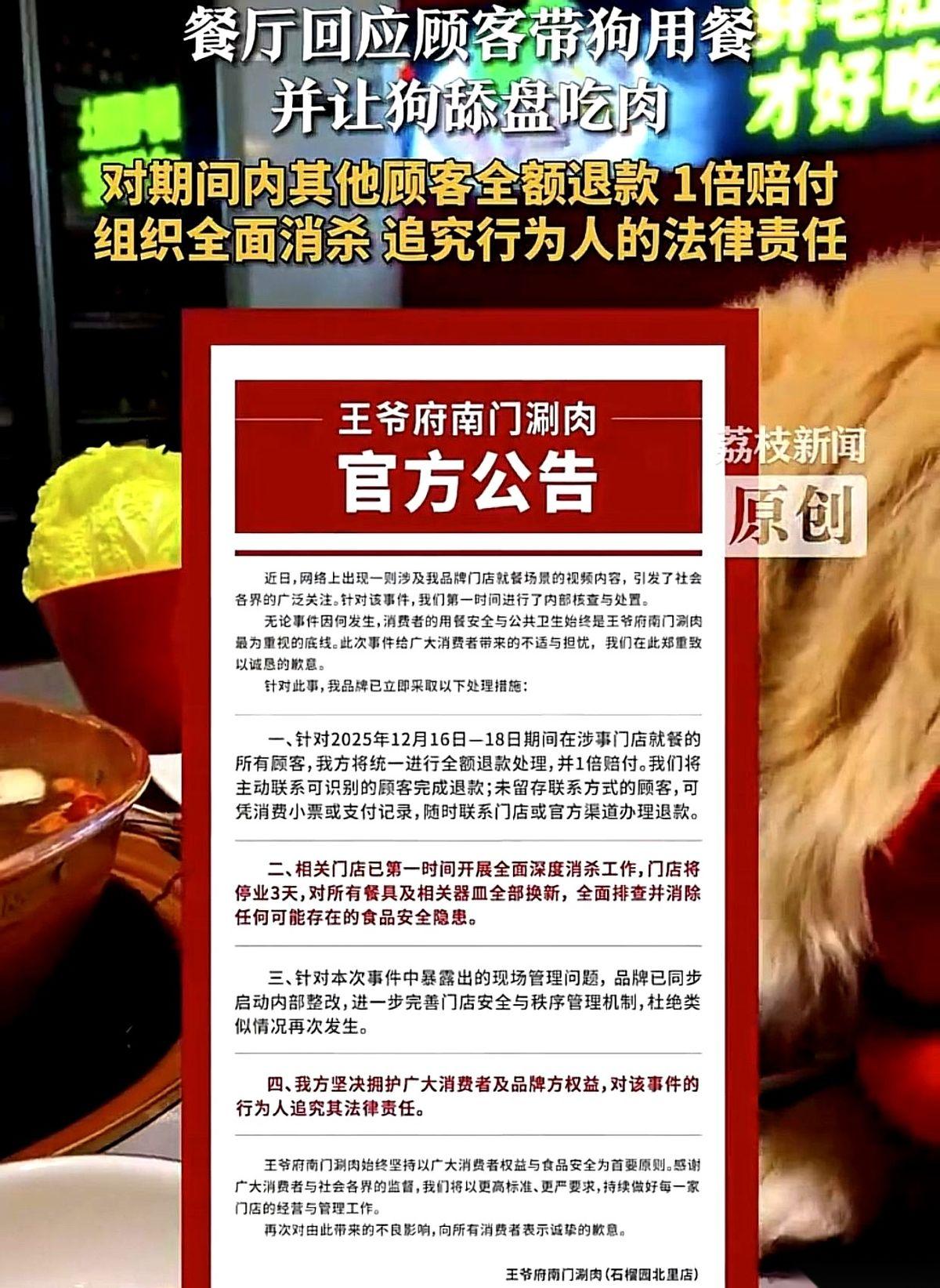 真绝了。 一家涮肉店,关门整顿,三天内所有顾客全额退款,还要找人索赔34万。 就因为一个女的,让她带来的狗,爬上桌子,吃了一整盘生羊肉。 最骚的操作是,这女的还拍了视频,发到了网上。 我有时候真搞不懂,这是一种什么样的脑回路?炫耀?觉得自家狗子高人一等? 但这事儿最扎心的,根本不是这个女的有多奇葩。 而是店家。 你敢信吗?店员、店长,眼睁睁看着狗上了桌,看着它吃肉。没人管。 他们怕什么?怕得罪这个女顾客。 怕她闹,怕她给差评,怕她“不好惹”。 结果呢? 为了不得罪这一个人,你把所有潜在的、来过的、未来的顾客,全给得罪了。 这笔账算得,真是“聪明”。 说白了,如果那个女的,但凡有点脑子,不发这个视频呢? 这事儿是不是就过去了? 我们这些人,是不是还在傻乎乎地去吃“狗舔过的盘子”涮的肉?想到这儿我后背都发凉。 那个视频,不是问题的根源,它只是一个证据。一个把桌子底下的烂事,掀到桌面上的证据。 它证明了这家店的底线,是可以为了不得罪人,而后退、后退、再后退的。 现在好了,34万。 用34万买一个教训:有时候,当个“不好惹”的老板,比当个谁都不得罪的“老好人”,重要得多。