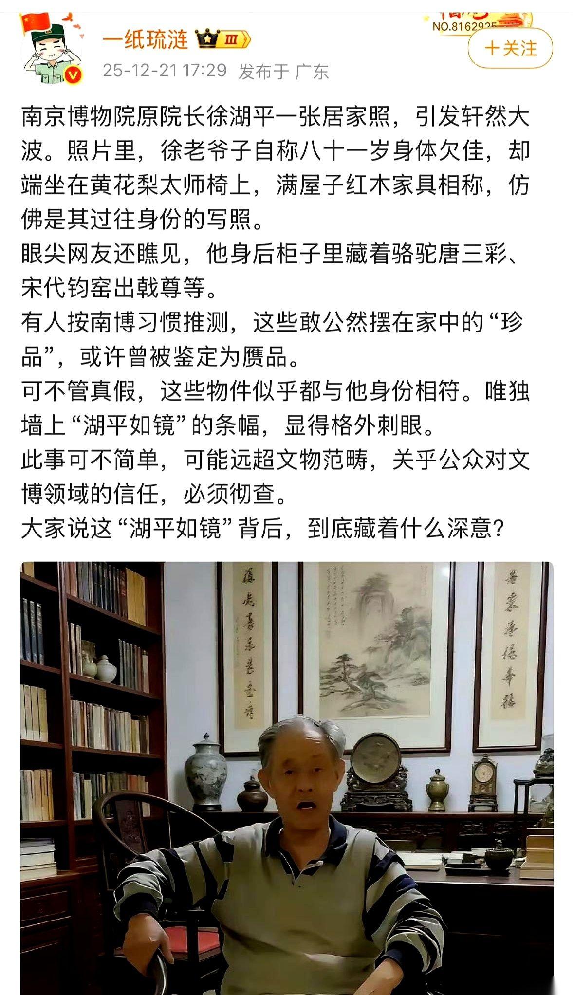 六千八。 就六千八百块,一件国宝,就这么没了。 我今天看到这个数,真的,气得手都在抖。2001年的6800块,可能比现在值钱,但那也买不了一平米像样的地砖吧?就拿去“卖”给了一个“匿名顾客”。 捐赠的人,是把心尖上的宝贝、把一个家族的传承交给了国家,交给了信任。 结果呢? 一个82岁的前院长,说自己老了,病了,不记得了。 可白纸黑字,你的签名就在那儿啊。您记不得事,倒还记得怎么把公家的东西“调剂”出去? 更有意思的是,一家人整整齐齐。 一个爹负责签字“调剂”,一个儿子就开着拍卖行负责“变现”。这活儿接得,多顺畅。 几十个内部员工,举报了多少年,跟往大海里扔石头一样,连个响儿都没有。 我都能想象出他们当年的那种无力感。眼睁睁看着好东西被搬空,自己喊破喉咙都没人理。 还有那个神秘的徐莺,一个学生物的,突然摇身一变成了研究古画的博士,还冒认是捐赠者的后代……她到底是谁?在这盘大棋里,她又算哪颗子? 这已经不是一个简单的案子了。 这是在剜我们心口的肉,是在践踏所有人的信任。 有些东西,是钱买不来的,是历史的温度,是民族的记忆。 丢了,就再也找不回来了。 希望能查个水落石出吧。 不为别的,就为给那份沉甸甸的信任,一个交代。
