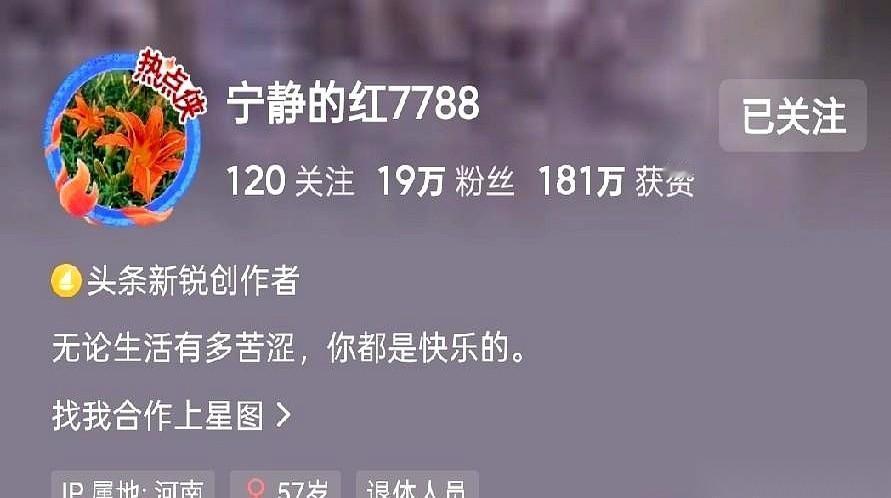 那个曾经在头条一天赚几千块的银行柜员,回来了。 好多新来的朋友可能都不知道,几年前的这儿,还不是现在这位“素老三”的天下。 那会儿最火的,是一个叫“宁静的红”的姐姐。人家不是什么作家,就是个天天跟咱们一样上班下班的普通柜员。 写的都是啥? 柴米油盐,鸡毛蒜皮,今天孩子笑了,明天老公又干啥蠢事了。 但那股子热气腾腾的生活味儿,绝了。 不像现在,好多文章看着看着就一股怨气顶到脑门上,觉得全世界都欠自己的。 她不一样,她能让你看完觉得,日子再难也还能过,还有点盼头。 就靠这个,人家实打实地赚到了钱,然后,说不写就不写了,消失得干干净净。 我当时还想,这人真飒。 结果你猜怎么着? 最近人家一回来,随便发点东西,流量还是哗哗的。 什么叫大咖?这就叫大咖。 说到底,什么作家头衔,什么写作技巧,可能都没那么重要。 大家累了一天,上网刷东西,图的啥? 不就图个真实,图个共鸣,图一口让你觉得“嘿,这不就是我身边发生的事儿么”的烟火气么。