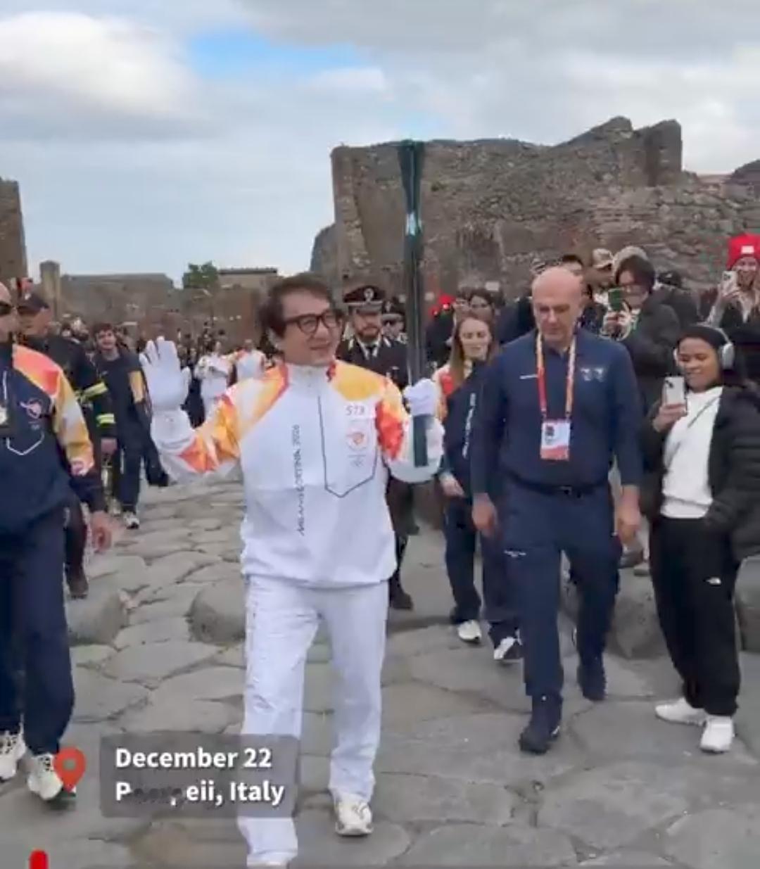 新闻快讯—— 周一,在2026年米兰-科尔蒂纳丹佩佐冬奥会火炬传递活动中,中国影星成龙手持该届冬奥会火炬,穿行于庞贝古城遗址。