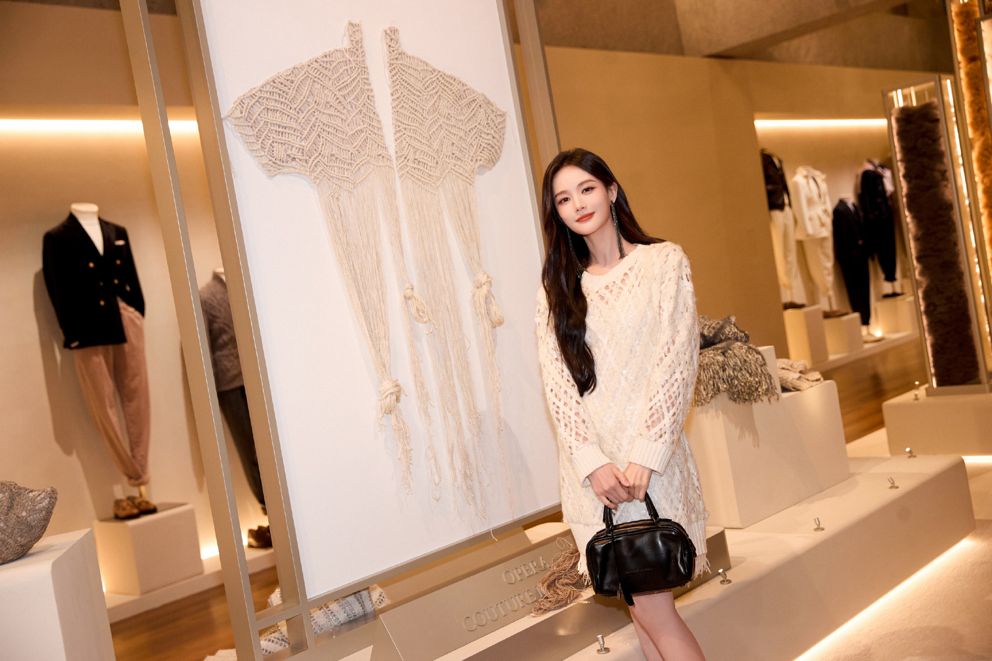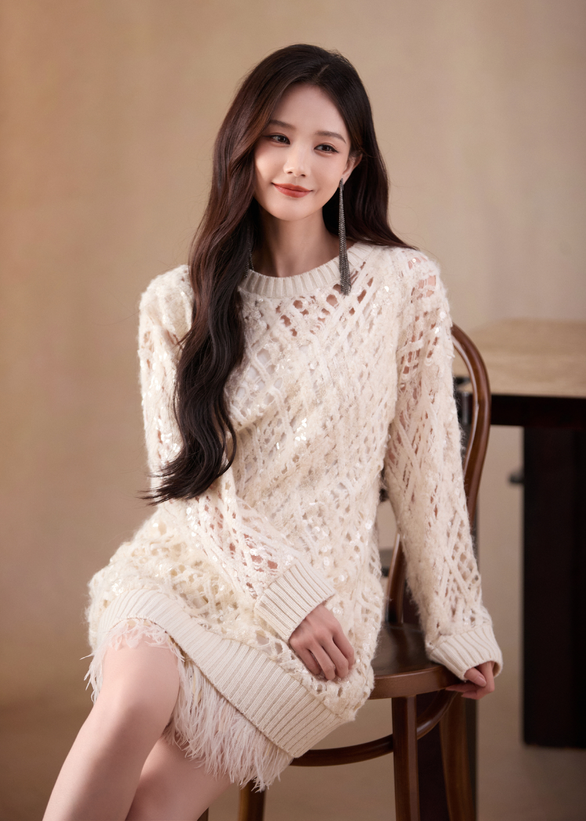 李一桐秋日温柔穿搭:镂空毛衣,简约有力的表达,诠释恒定温绒。李一桐