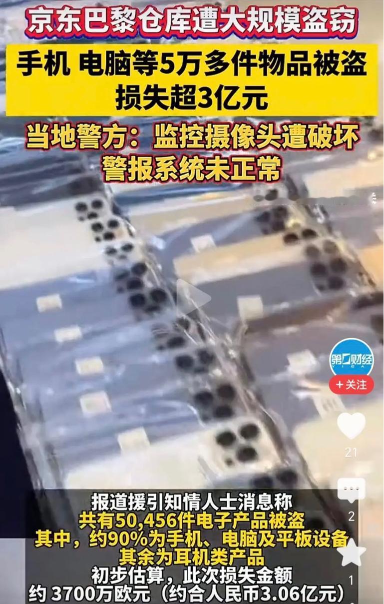 巴黎仓库被盗3亿?京东深夜回应背后中国企业出海的硬骨头与真底气 谁能想到,浪漫之都巴黎的深夜,竟成了职业盗贼的“提款机”?京东位于巴黎北郊的仓库遭遇大规模盗抢,网传3亿人民币损失的消息瞬间引爆全网,有人心疼企业受损,有人质疑安保漏洞,更有人为中国企业出海之路捏了把汗。 但比起聚焦“损失多少”,这起事件更该让我们看见两个真相。一方面,欧洲的治安现状早已不是童话模样:案发地塞纳-圣但尼省本就是治安重灾区,2024年全法12%的入室盗窃案集中于此,而法国全年平均两分钟就发生一起盗窃案.盗贼破坏监控、让警报失效,用伪造车牌货车3小时内运走数万件3C产品,整套流程专业到像“军事行动”,背后是成熟的犯罪链条在作祟。从卢浮宫珠宝失窃到商业仓库被端,足以说明安全已成为当地最奢侈的必需品。 另一方面,京东的深夜回应藏着中国企业的沉着与韧性。没有回避问题,而是坦诚确认事件、通报仓库已恢复运营,既不夸大损失引发恐慌,也不讳言挑战而退缩。要知道,这家企业早已在全球23个国家布局超130个海外仓,“全球织网”的决心从不是一句空话。面对海外法律限制、安保体系“水土不服”等难题,他们没有选择退缩,而是用最快速度恢复供应链,这份抗压能力,正是中国企业出海的底气所在。 有人说“出海不易,何必冒险”,但世界从不会给守在原地的人机会。中国企业走出去,本就是在陌生的规则里闯生路.在复杂的环境中谋发展。这次盗抢不是终点,而是一次提醒——既要补齐海外安防的“本地化短板”,也要守住全球化布局的“长期主义”。 京东用行动证明,真正的强者从不是永不跌倒,而是跌倒后立刻起身继续前行.对于中国企业来说,出海之路或许满是荆棘,但这份敢闯敢拼、遇事不慌的劲头,终将让世界看到中国品牌的力量。你觉得中国企业出海最该攻克的难题是什么?来评论区聊聊你的看法~
