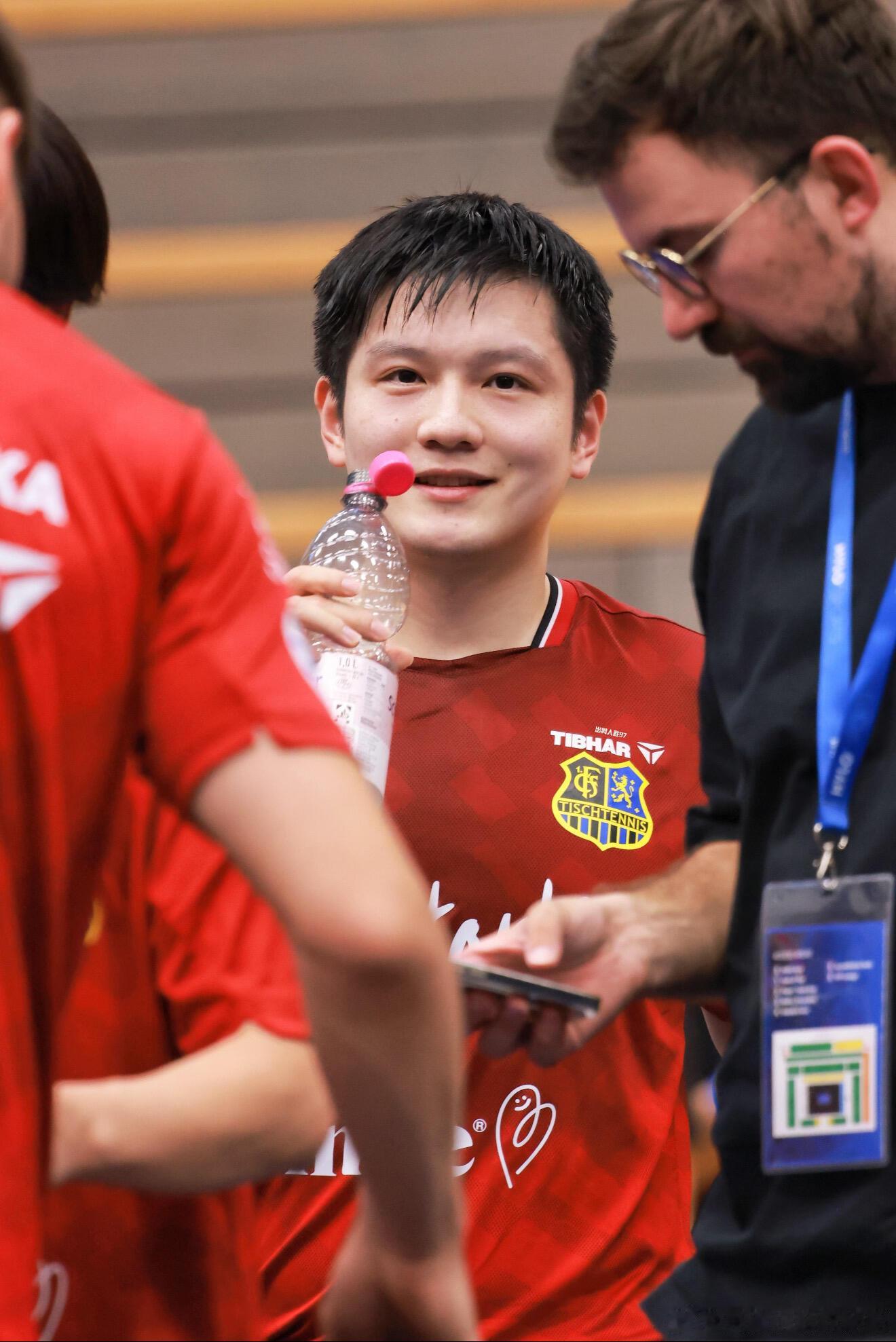 萨尔俱乐部赛后合影!樊振东熊猫握拳,萌力无限