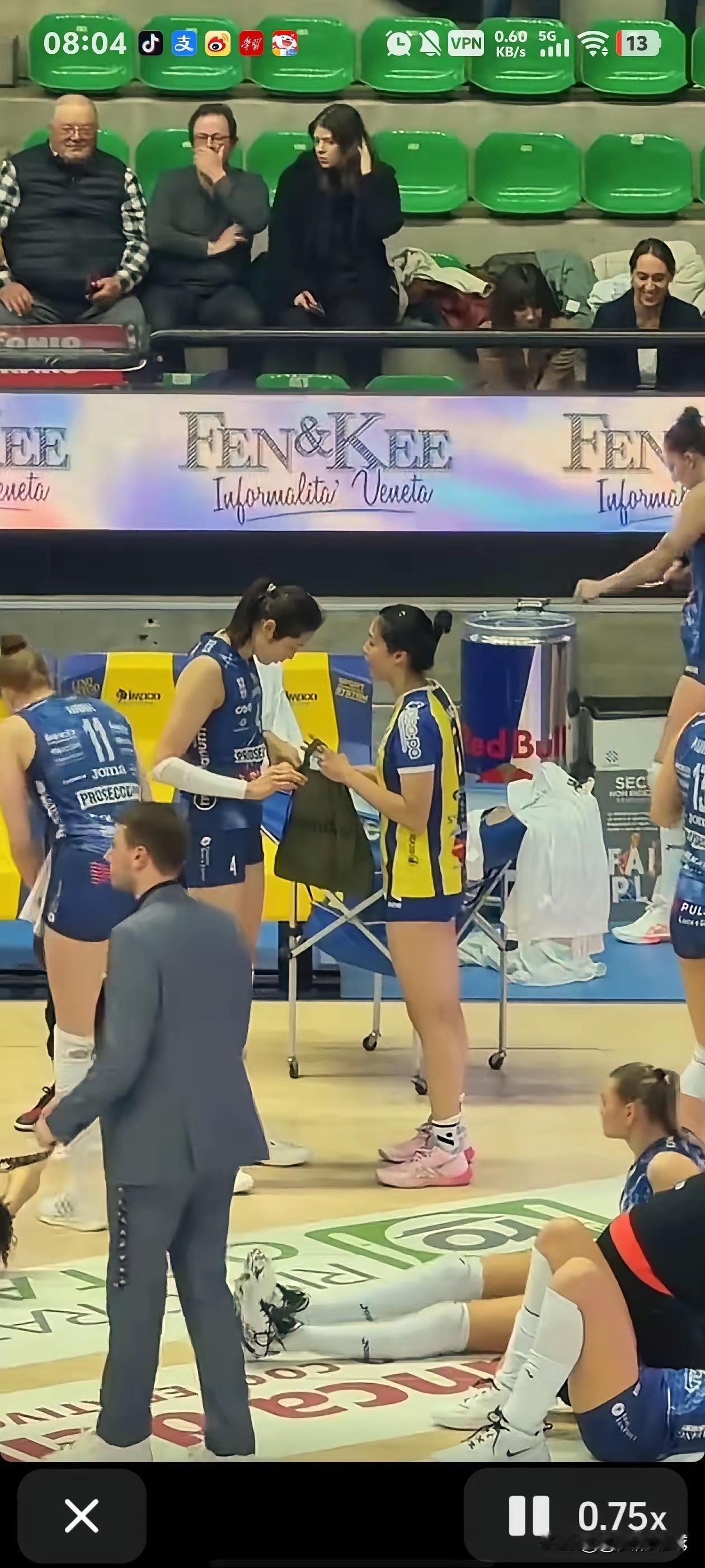 这一幕太温馨了! 庄宇珊给朱婷,带来了家乡礼物,比赛一结束,庄宇珊就过来找朱婷聊天了,还给朱婷送了家乡带来的小礼物,朱婷看到礼物,开心地笑了,心里一点感觉特别暖心吧。 两位中国女排队员,在异国他乡重逢,两人都打出来自己的高水平,朱婷 12 分是全场 MVP,庄宇珊 10 分也是队内最高分。 看到两人互动的这一幕,中国球迷都特别温馨感动吧!
