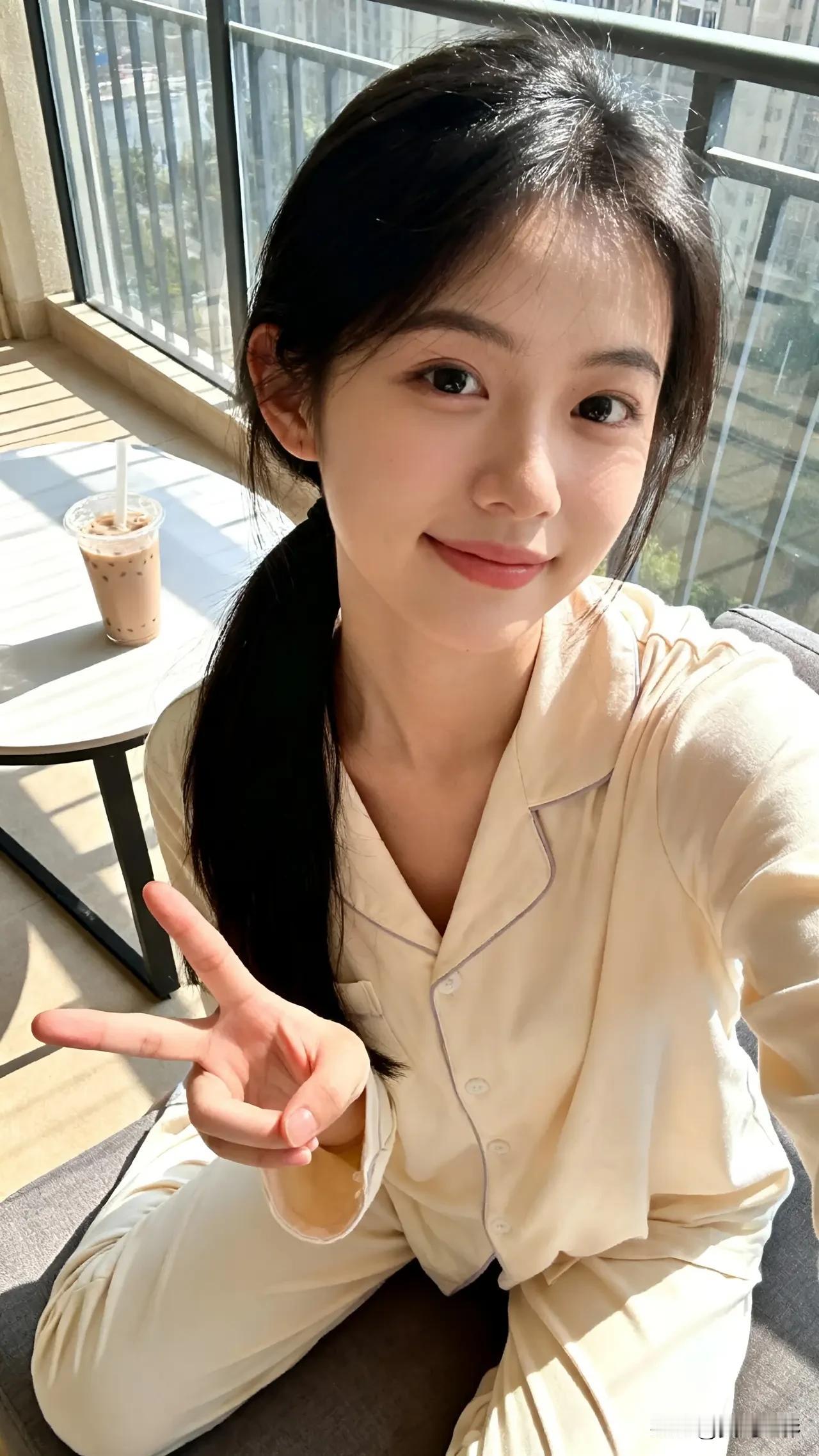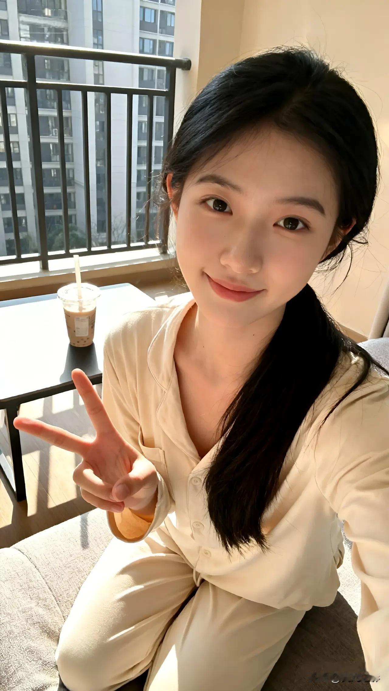 光之影 阳光明媚的午后,元气满满的少女,比个V字,元气满满的一天开始啦!🌞💕 少女感笑容 元气满满的微笑