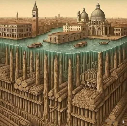 意大利威尼斯并非建在坚实的地面上……而是建在沉入海底的数百万棵树木之上。 自公元前421年以来,这座漂浮的城市挑战了时间和工程的规律。其他城市矗立在岩石或混凝土之上,而威尼斯则建在浸没在咸水中的原木之上。主要为直立的树木,这种树木在水下不会腐烂。即使将其埋入泥土或浸入盐中,木材也不会变弱……而是石化。经过几个世纪的变硬,几乎像石头一样坚韧。 一个古老的奇迹,至今仍支撑着整座城镇。 圣马科斯钟楼安放着超过10万个木制引航员。雄伟的安康大教堂则需要超过100万个木制引航员。每个引航员都是手工钉成的,每隔半米一个,并延伸到海床下3米。 但为什么要在水上建造一座城市呢? 公元五世纪初,意大利的土地被野蛮部落侵占。人们逃离家园,在威尼斯的沼泽湖中寻求庇护。入侵者无法轻易渡过,湖水成了一道屏障。 在那里,在运河与泥泞之间,诞生了世界上最不可思议的城市之一。这座城市不强加于自然……而是拥抱自然。 威尼斯并非靠魔法漂浮。它漂浮于世,靠的是智慧,靠的是必然……以及那份永不沉没的故事的力量。
