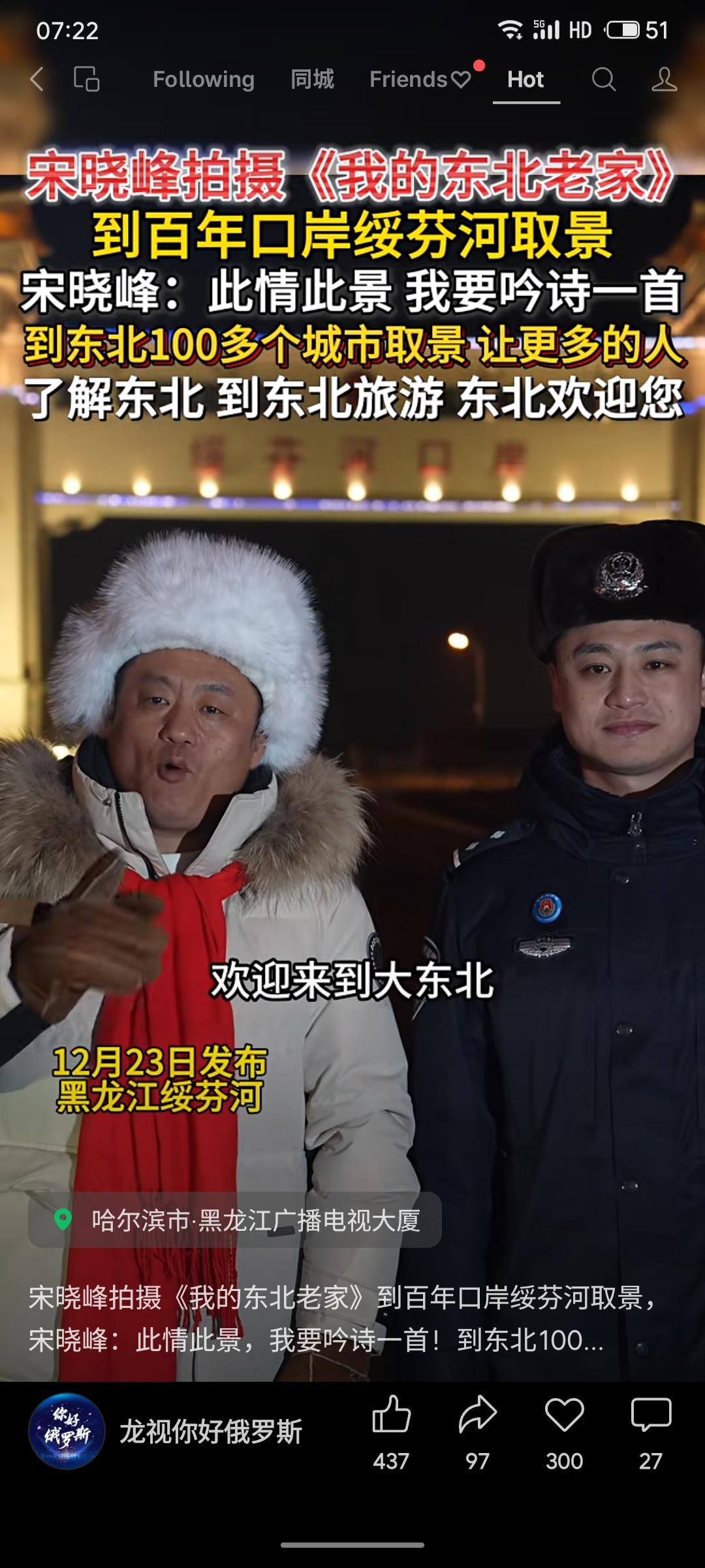 演员宋晓峰为拍摄《我的东北老家》到百年口岸绥芬河取景,并即兴吟诗。他表示已走访东北百余城市,旨在通过节目让更多人了解东北、吸引游客,热情推介家乡旅游。