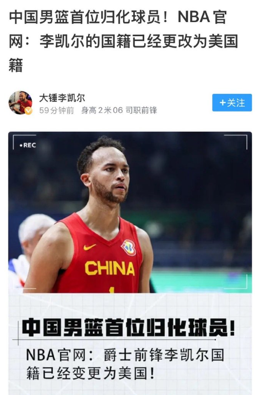 中国男篮的首位归化球员李凯尔国籍更改为美国籍。 相比国足那边,他这个钱倒是花的不算多,就100万刀。 世界杯当时打得也尽力了。
