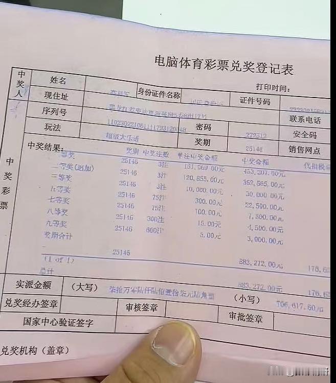 哭晕在厕所,错一号丢失近1700万,这位来自黑龙江的彩友真是让人又喜又叹——25146期大乐透,他精心选了一组10+4的大复式,竟然斩获3注二等奖!可谁能想到,后区仅仅错了一个02,就与1700万大奖擦肩而过啊!原本这可是1注一等奖追加+4注二等奖追加的超级大奖啊! 最终88万的奖金固然值得庆贺,但想到那失之交臂的1700万,真像是芝麻和西瓜的差距。这位朋友此刻怕是肠子都悔青了吧?常言道:命里有时终须有,命里无时莫强求啊!