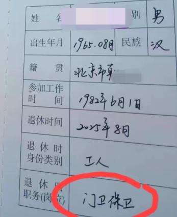 北京门卫大爷养老金也太给力了! 这个养老金核定表对应的退休证上,退休前岗位是“门