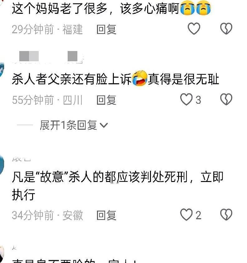 杀人犯的爹,对着镜头说:“我们肯定要上诉的,不应该闹得凶。” 我真是…一口气没上来。 你的女儿,在家门口,把人家姑娘捅死了。 人家的妈,哭天抢地,在网上撕心裂肺地求个公道,到你这儿,成了“闹得凶”? 成了你女儿被“重判”的理由? 我来翻译翻译什么叫“重判”:死缓。 死缓,懂的都懂,说白了就是留了条后路。改无期,再减刑,熬个十几年二十年,出来又是一条“好汉”。 就这,你们还嫌重。 还觉得委屈。 还理直气壮地把脏水泼回受害者家人身上。 凭什么? 就凭你女儿有“精神病”? 但凡你这个当爹的,有点责任心,知道自己女儿精神状态不稳定,早干嘛去了?监护人的责任就是让她满世界乱逛,去别人家门口搞突然袭击吗? 精神病不是免罪金牌,更不是让你这种家人拿来当挡箭牌,反过来指责受害者的武器。 真的,有其父必有其女。 从根子上,就没把别人的命当命。 最心疼的,还是那个拼了命为女儿讨说法的妈妈。她要面对的,不止是丧女之痛,还有这样一家子毫无底线、颠倒黑白的无耻之徒。 这世界有时候真让人寒心。