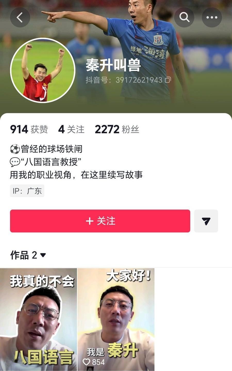 前上海申花球员秦升开通抖音账号,名叫:秦升叫兽,个人简介是:曾经的后防铁闸、八国语言教授。 秦升在本轮足坛反腐反赌中被查,因为介绍球球员踢假球,充当皮条客,从中获利,被判处有期徒刑二年,并处罚金人民币15万元。 当然,他已经为自己的过错受到了处罚,现在是合法公民,开个抖音账号也是正常的,没事从职业球员的视角,聊聊足球往事,聊聊足球应该怎么搞,毕竟是职业球员。 只是个人有个疑问,秦升真的会八国语言吗!