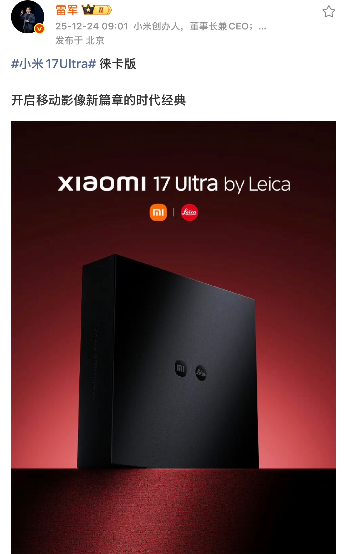 小米17Ultra徕卡版官宣!跟小米17Ultra比有个独占的硬件,