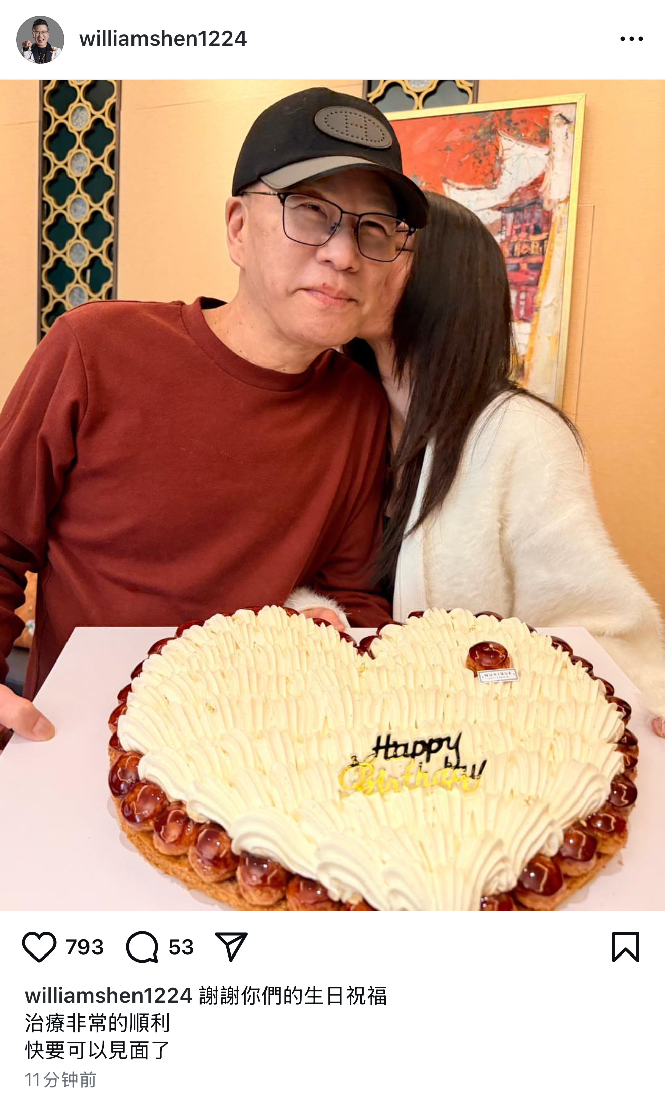沈玉琳生日晒和老婆芽芽亲亲合照👩❤️👨“谢谢你们的生日祝福,治疗非常顺利,快要可以见面了”