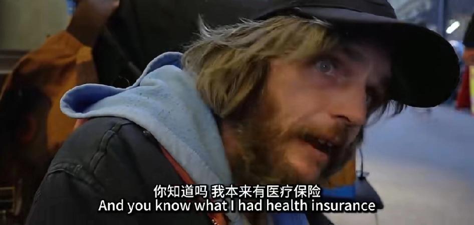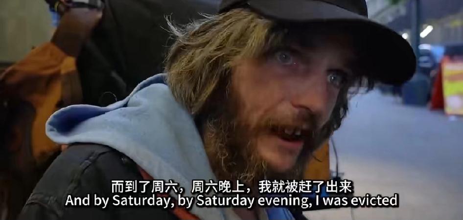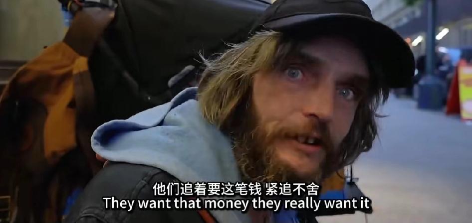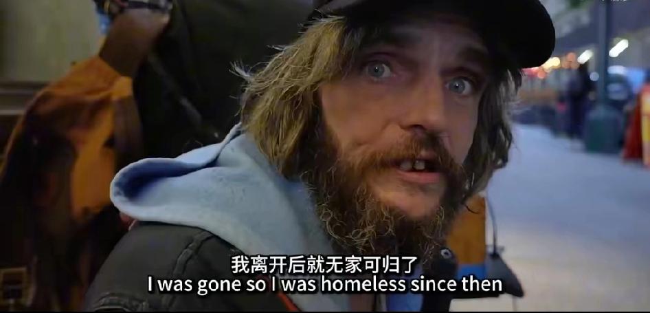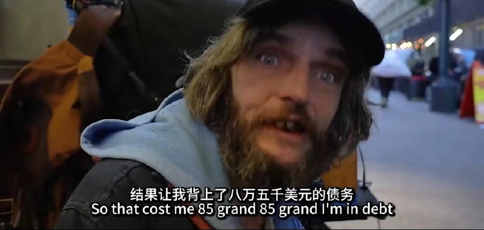 美国的斩杀线真是快准狠,一点也不含糊:妻子周五早晨死亡,男子周六晚上就被赶出家门,走上流浪之路。 因为妻子治病、死亡,男子背上八万五千美元的债务。男子本来是有医疗保险的,但妻子治病是在医保网络外治的病,治了两年,在6年前去世。 虽然你流浪了,但追债的还是能追到他,4年前,他在乞讨时被送达了传票。 他妻子的三个孩子是他养大的,但他们不管。 流浪时,接触了坏人,吸了冰毒,把牙毁了。现在已经戒毒了。 那为什么不去收容所呢?因为那不安全,要守床位抢床位,地上全是尿瓶。 在美国,一次变故,一次车祸,一次生病,一次失业,就足可以让你无缘无故的进入斩杀线。