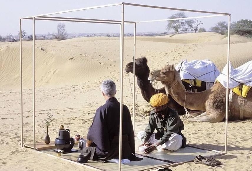 看高山大海,阅世间浮华,品生活百味 法国摄影师兼行为艺术家皮埃尔·塞内特,在全球范围内,随机挑选来自不同文化背景和社会阶层的人,在简易搭建的临时空间里,与他们共饮一杯热茶。受邀的人,将自己国家或者民族的文化珍藏品,陈列于立方体空间,与艺术家共同品味休闲时光。 皮埃尔将此项目命名为"游击茶室",这一幕,的确让审美和情感都获益。