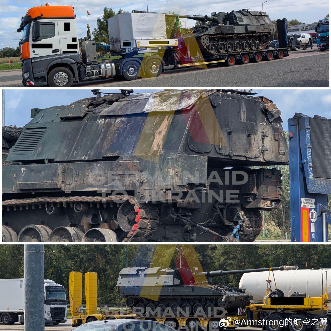 一辆经历战火的乌军PZH2000自行火炮被送回德国大修。俄乌冲突