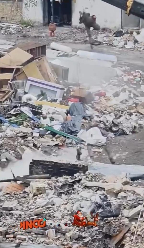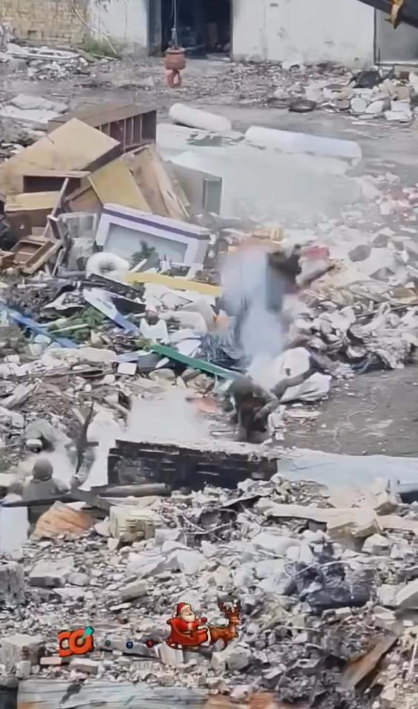 讽刺了乌克兰电视马拉松节目对战争的报道,称其是由虚构的“贝克街区95号”工作室制作的——这是对泽连斯基的“95街区”喜剧团的嘲讽——帖子使用了一段21秒的视频,视频中士兵身处废墟之中,一辆虎式俄罗斯装甲车,场景中一群俄罗斯士兵在庆祝,一声爆炸一个人体模型被炸上天,不知道是要表达哪个战区的情况。画面上叠加了红色“制作”标签,例如“BINGO”和“已完成”,以此来暗示这是摆拍的宣传片。 该视频于2025年12月23日发布,迅速获得了220个赞和34条回复,其中大部分来自讲俄语的用户,他们借此放大反乌克兰的嘲讽。 在双方互相指责对方伪造视频之际,最近的报道证实,验证此类在战场上广为流传的视频真实性的难度。