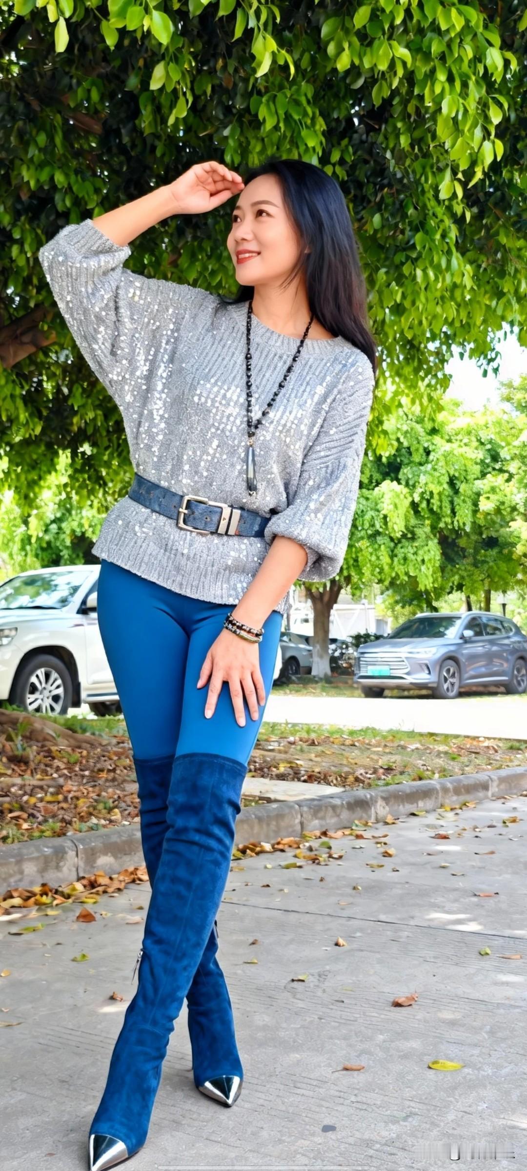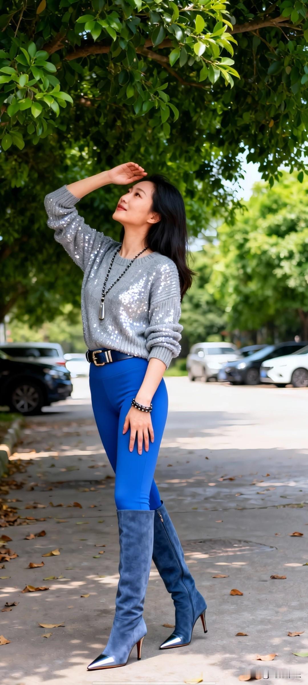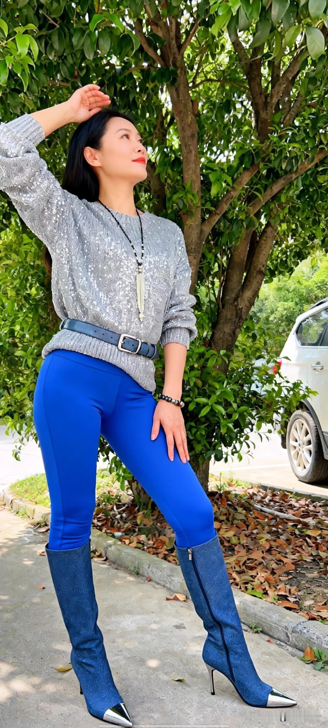 日常穿搭指南:灰色毛衣+蓝色紧身裤,时尚又保暖!