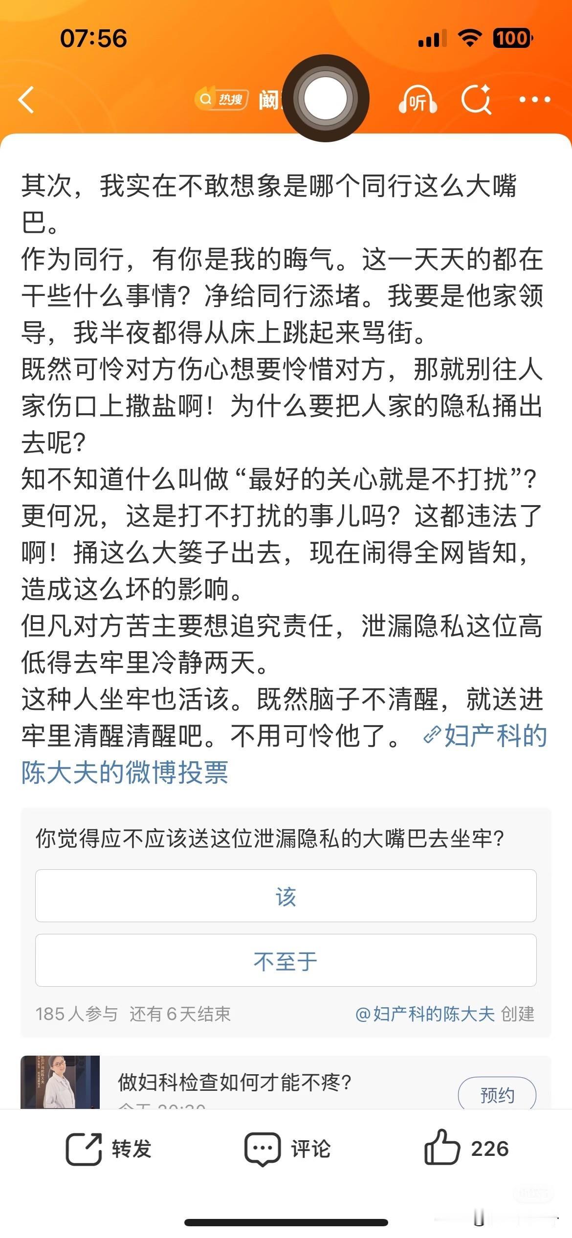 大家知道的,一般很少站208万 但这次,支持阚清子维权 假的就是纯造谣,真的就是泄露个人隐私。无论从哪个角度都是犯法。 她首先是个人,是个孕产妇,才是明星。 如果是假的,对于一个妈妈来说谁能接受自己的孩子被这样造谣。 如果是真的,她已经非常非常非常伤心难过了,还要被作为谈资。 医院泄露这种信息该死,大家也避雷这家医院吧。