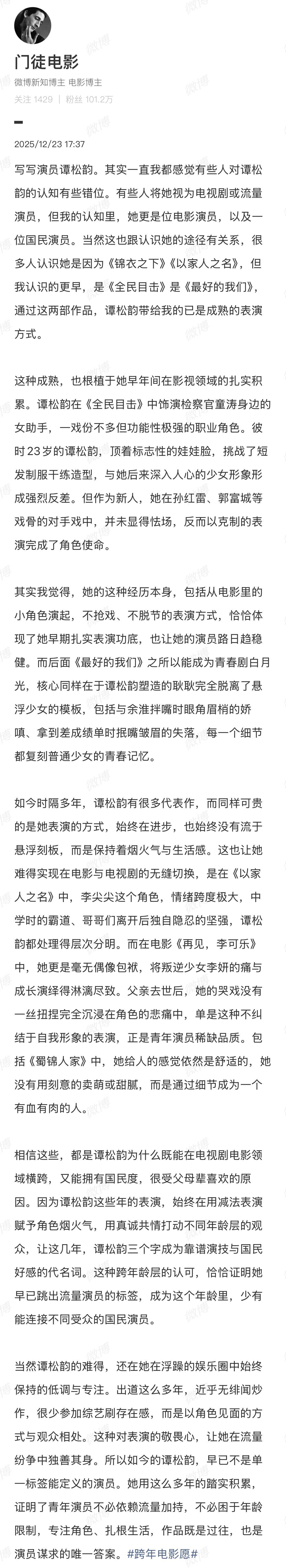谭松韵谭松韵受父母辈喜欢的原因塑造的角色自带温暖烟火气,细腻演技让每个形象都深