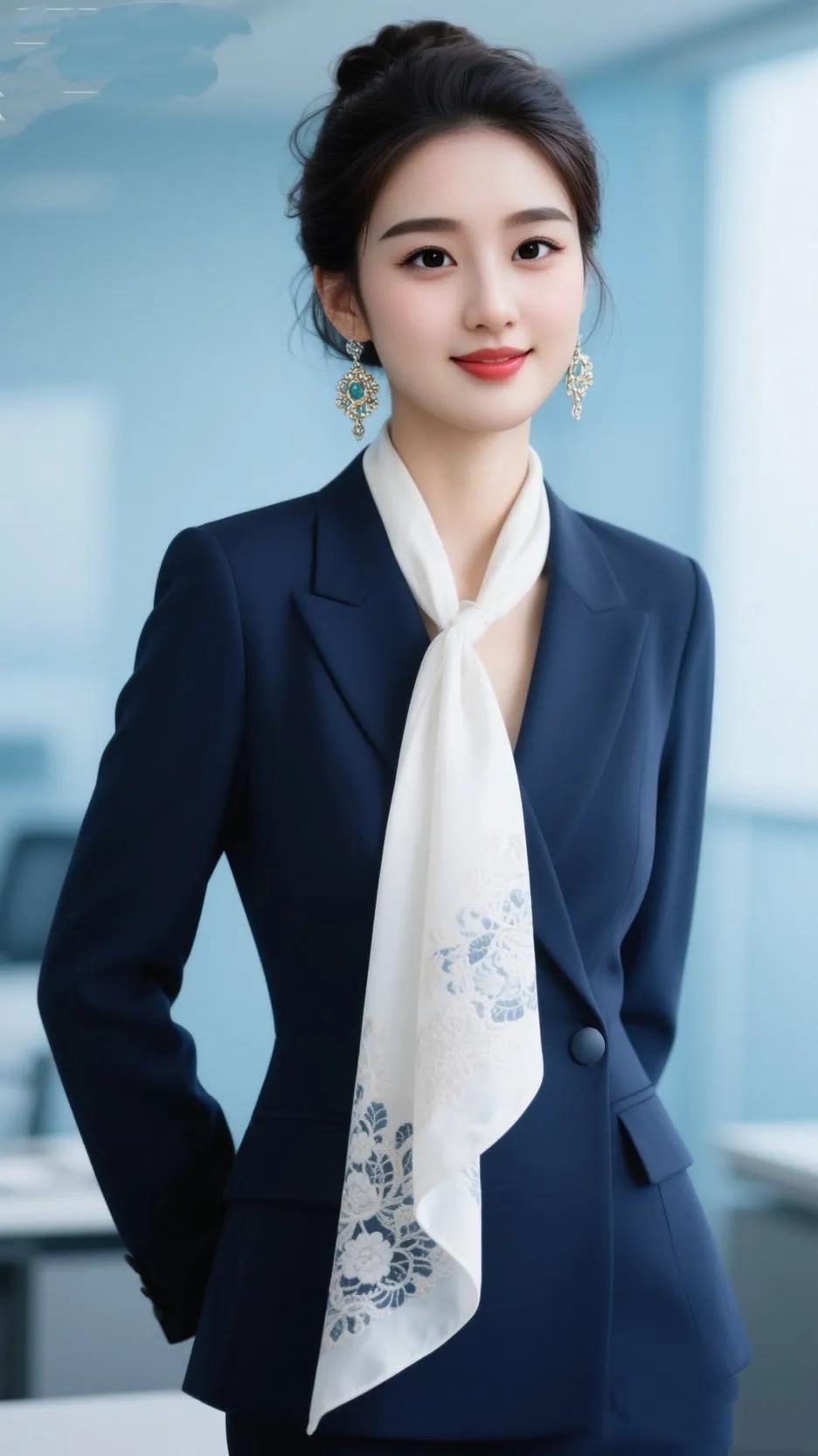 优雅职场风,灰色西装裙搭配丝巾,女性魅力十足!