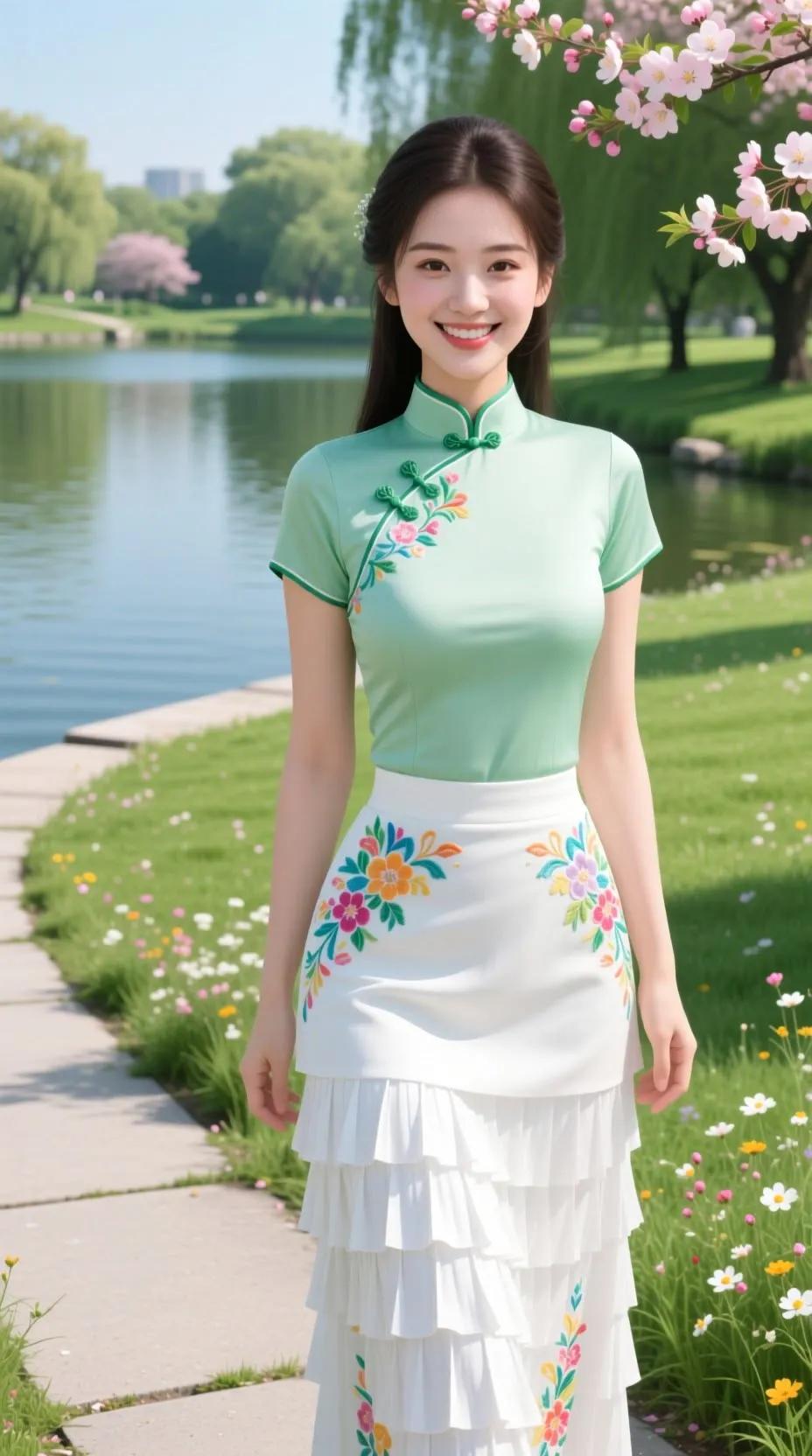 优雅的旗袍,绽放的花朵,古典与现代的完美结合。
